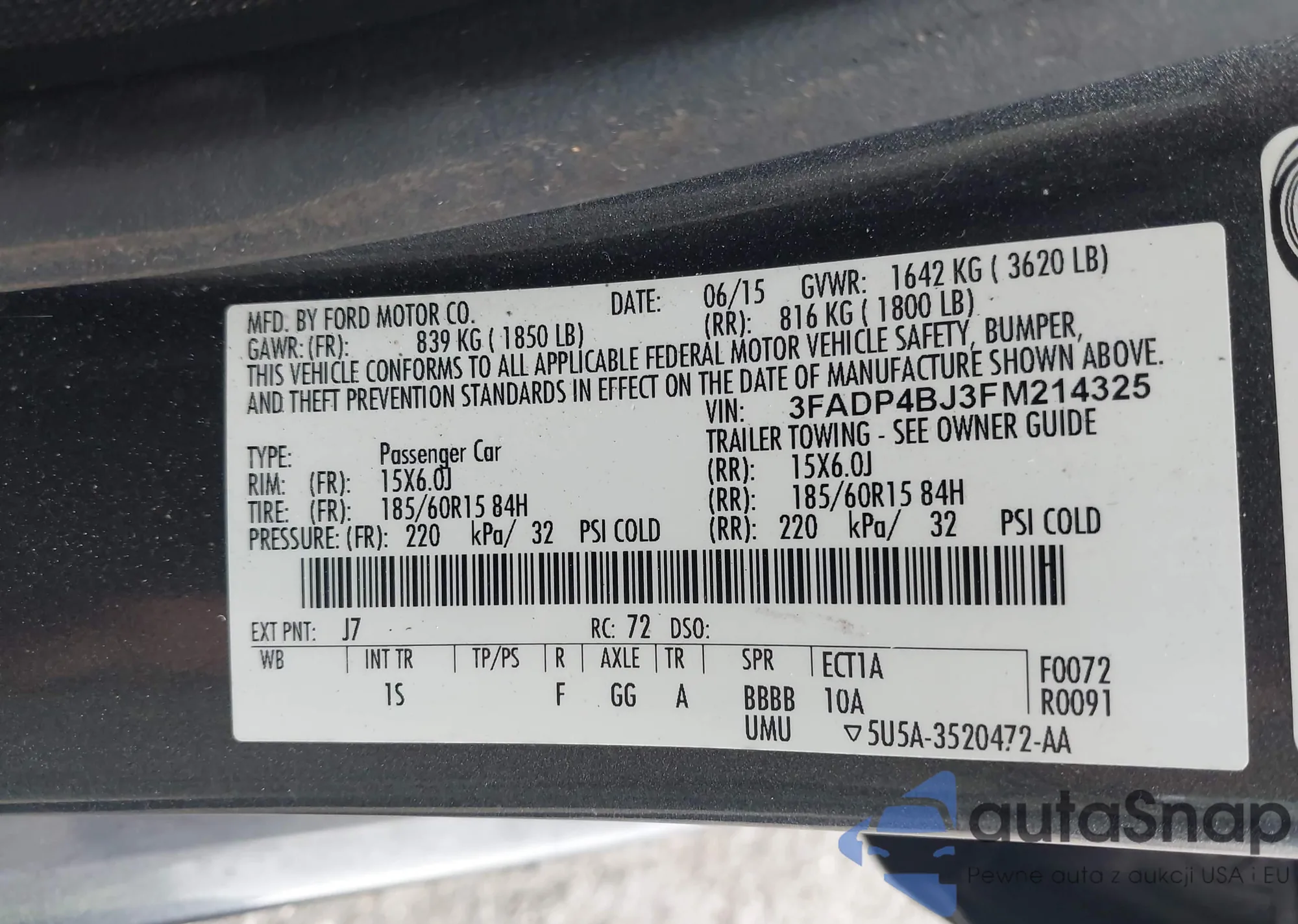 LOT: 41082174 VIN: 3FADP4BJ3FM214325