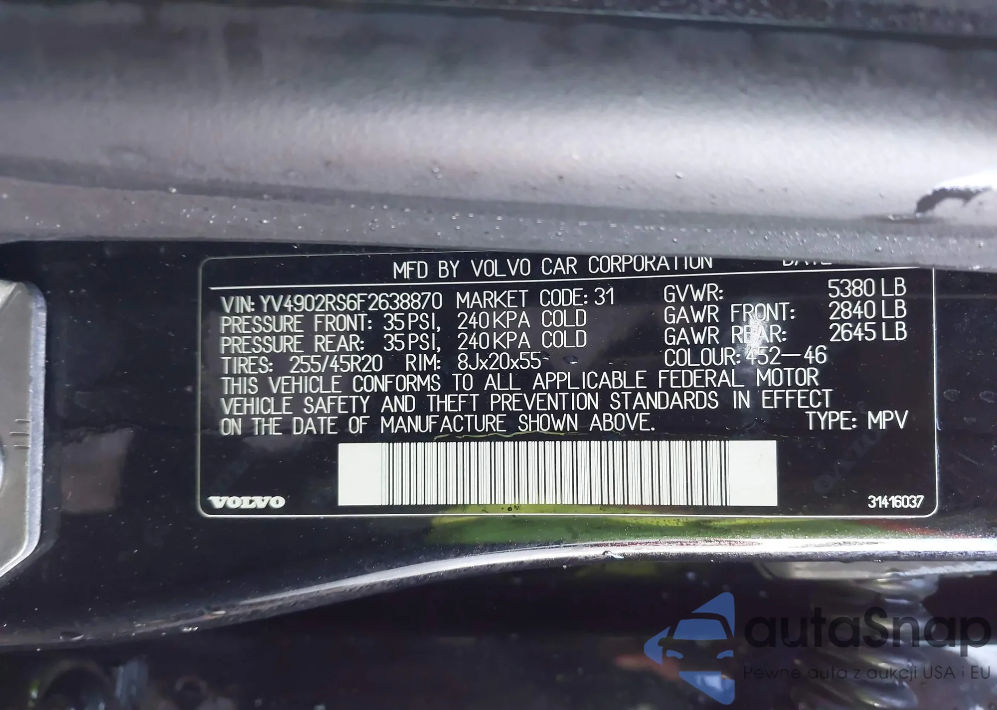 • VIN YV4902RS6F2638870