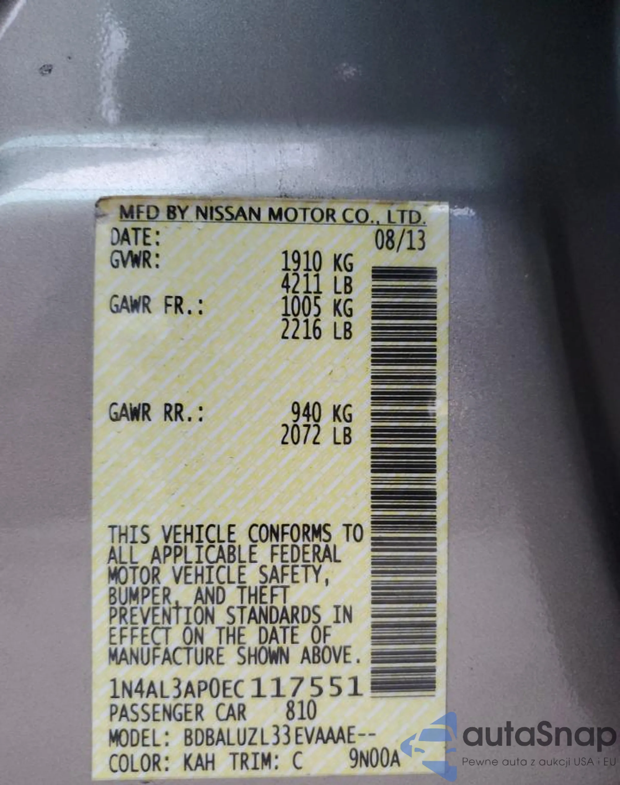 LOT: 82837814 VIN: 1N4AL3AP0EC117551