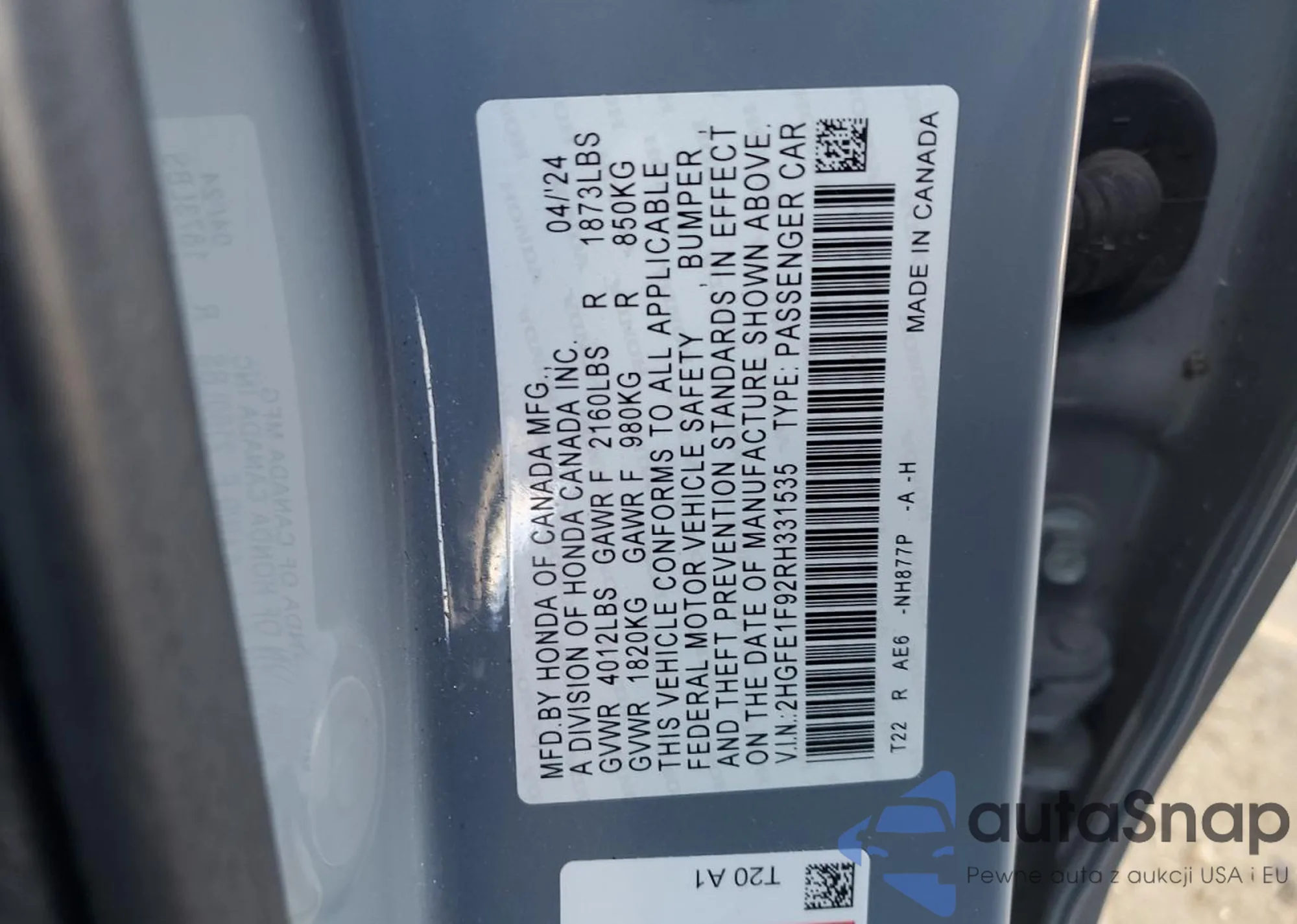 LOT: 81479514 VIN: 2HGFE1F92RH331535