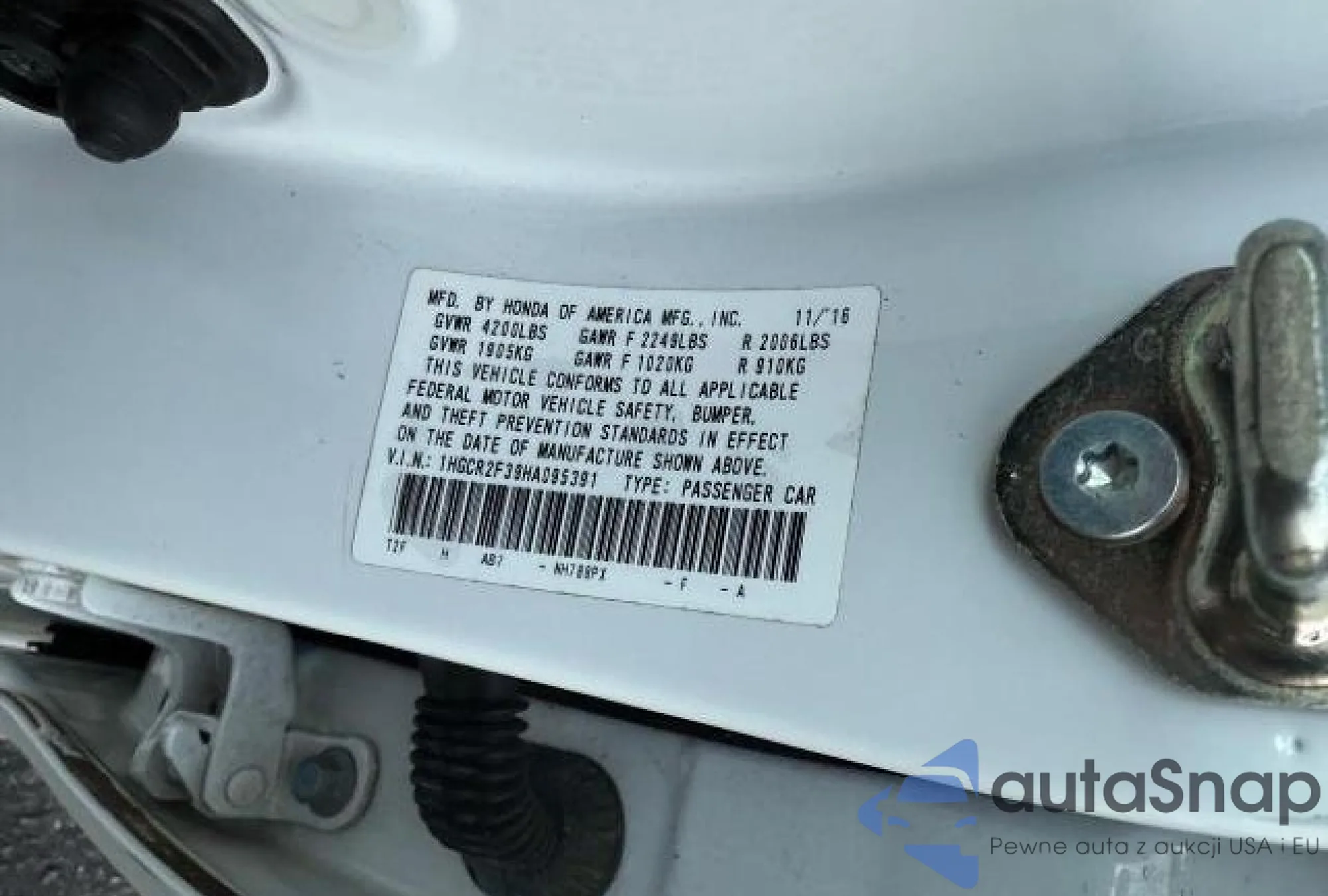 LOT: 83273124 VIN: 1HGCR2F39HA095391