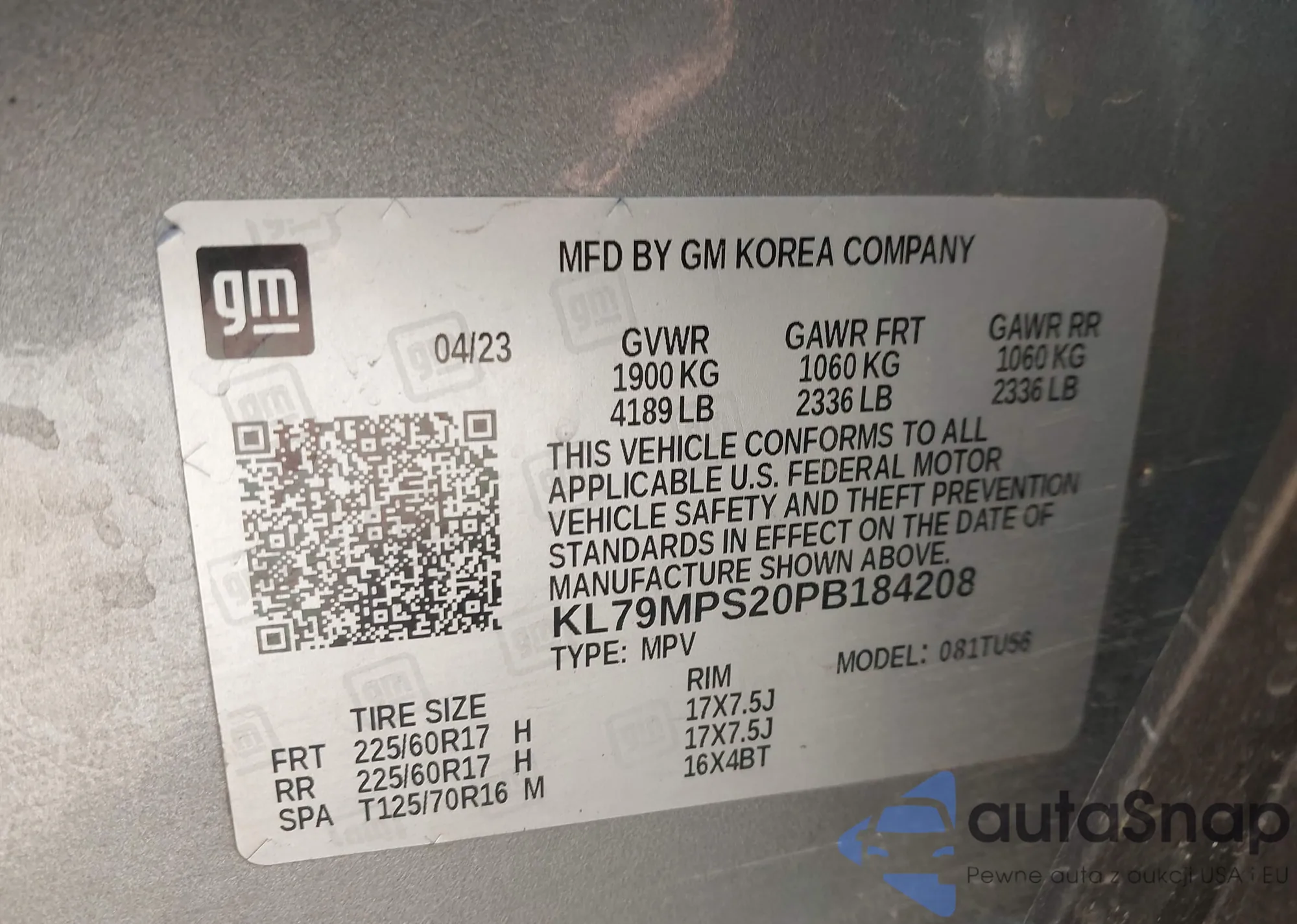 • VIN KL79MPS20PB184208
