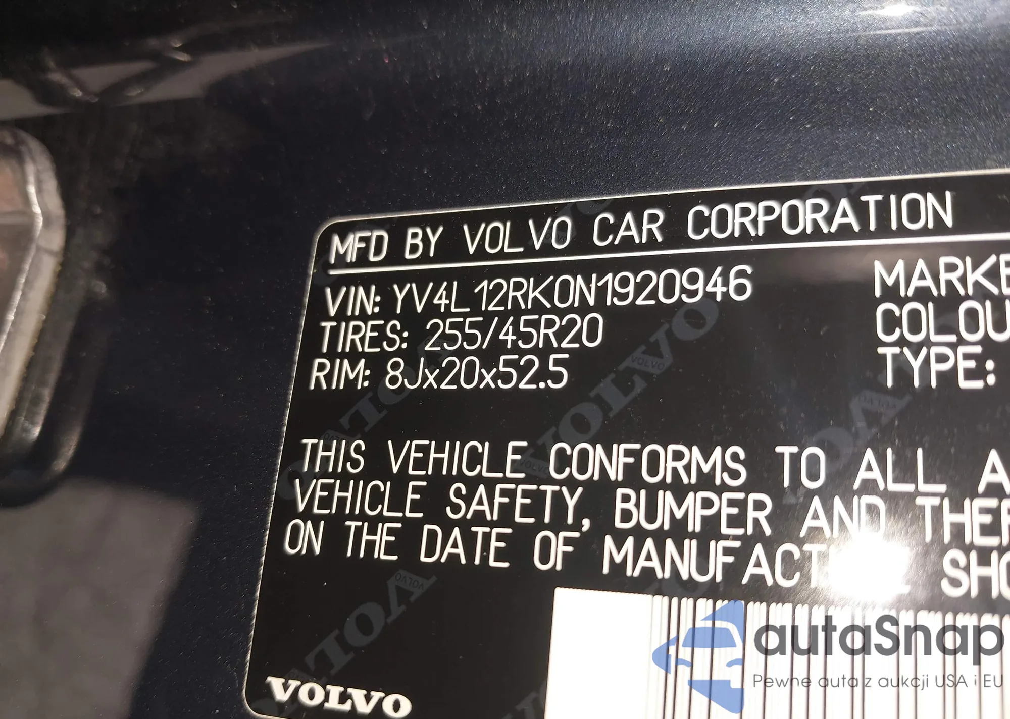 • VIN YV4L12RK0N1920946