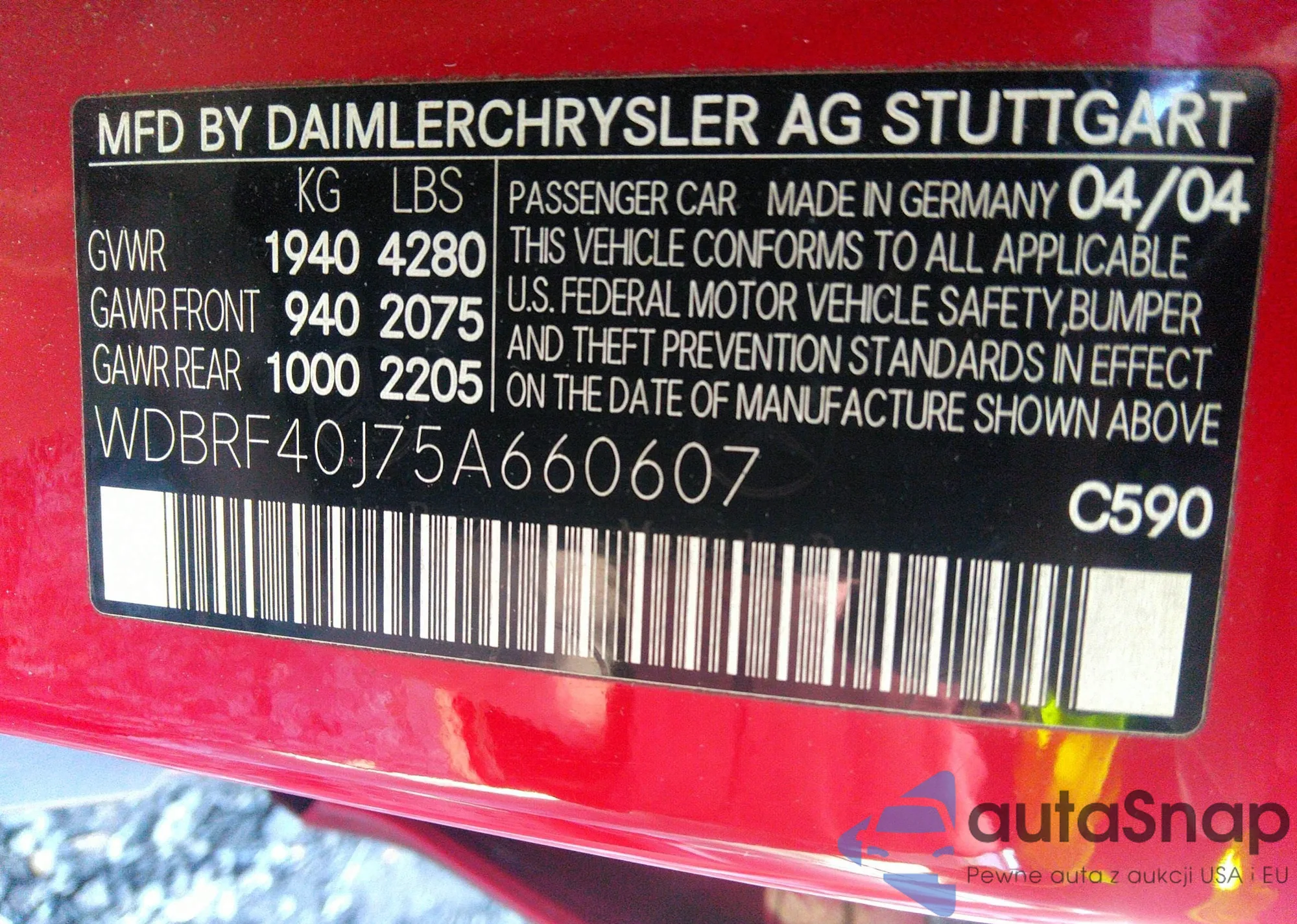 LOT: 35734845 VIN: WDBRF40J75A660607