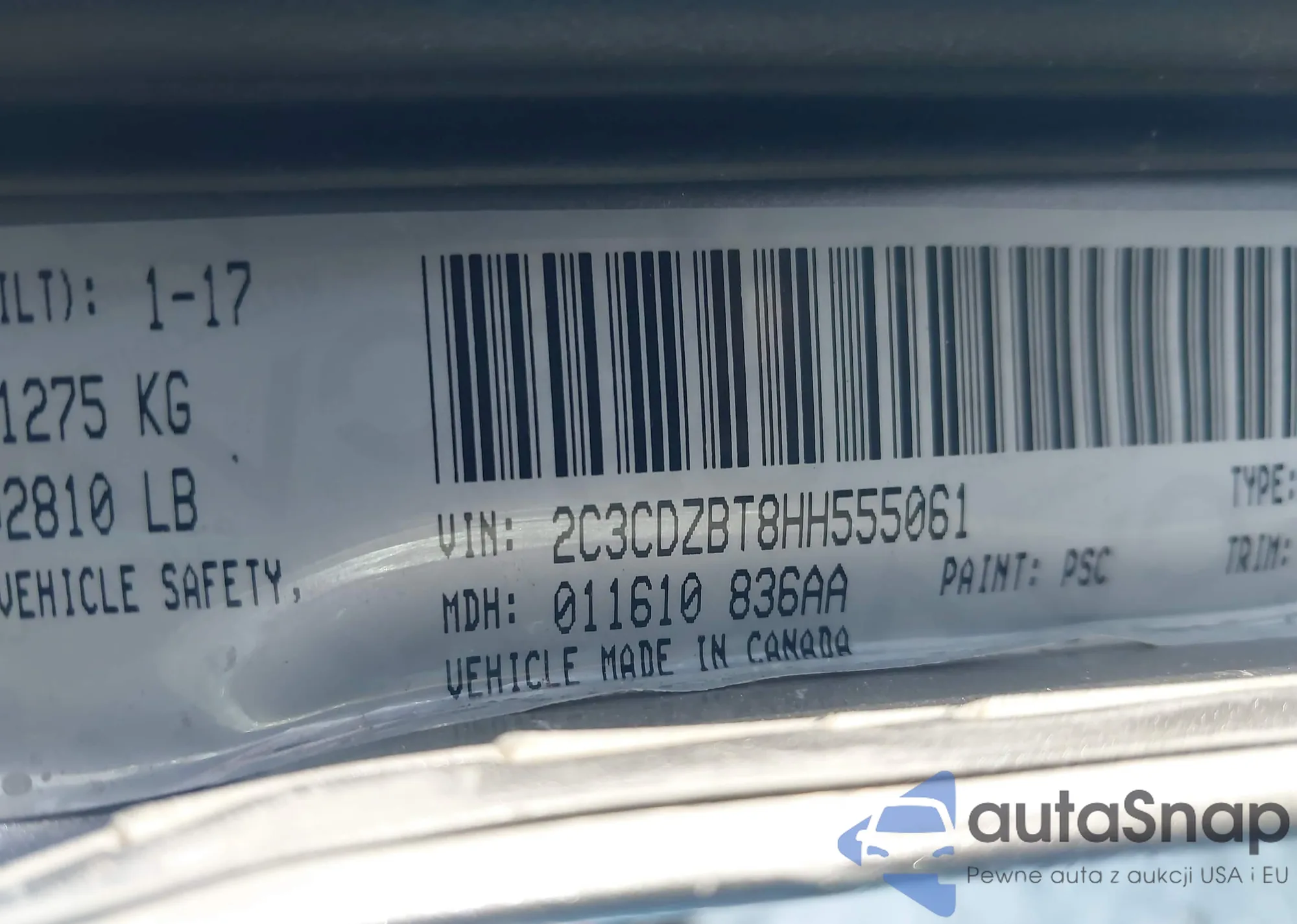 • VIN 2C3CDZBT8HH555061