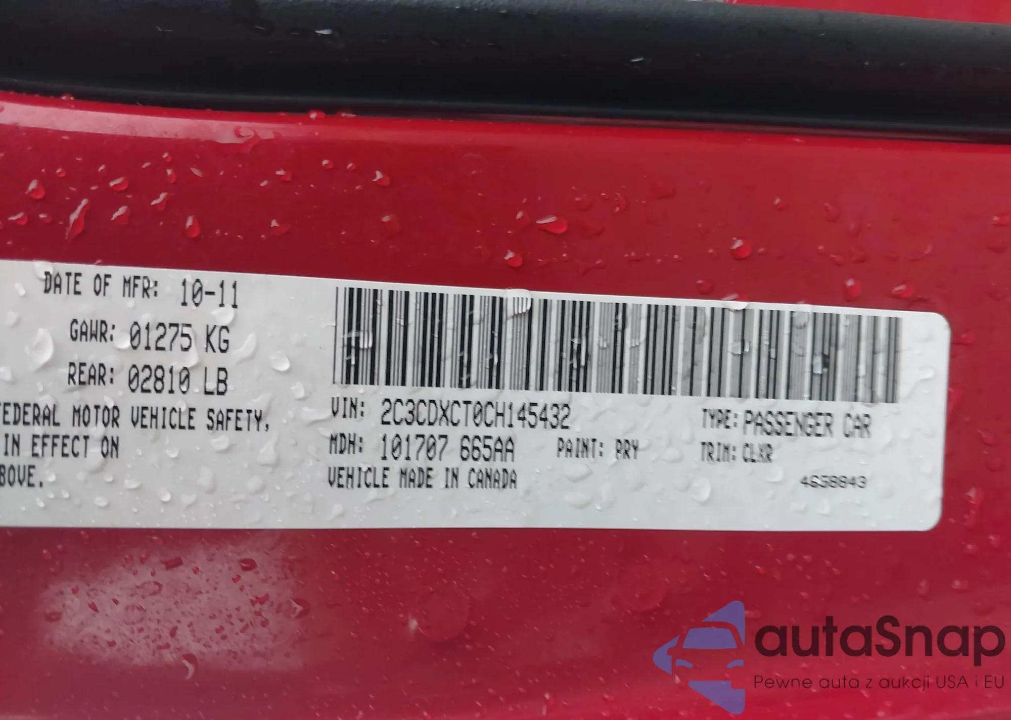 • VIN 2C3CDXCT0CH145432