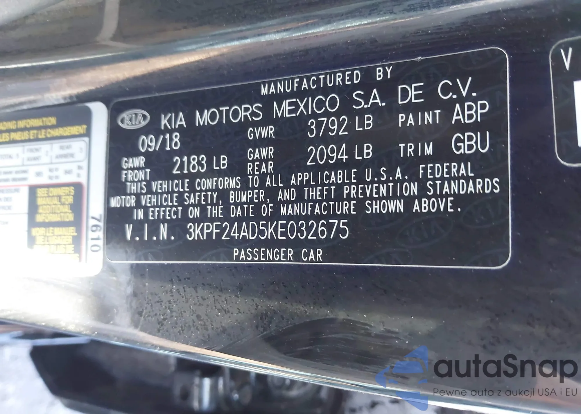 • VIN 3KPF24AD5KE032675