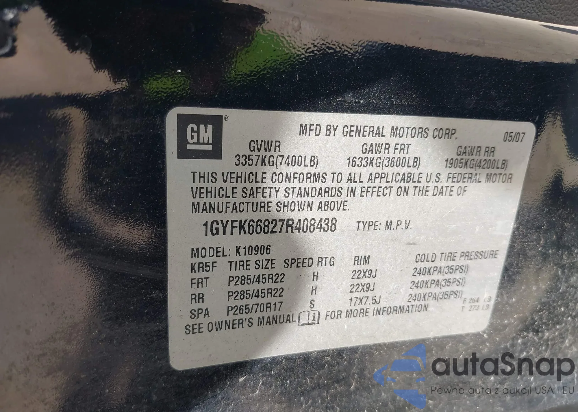 • VIN 1GYFK66827R408438