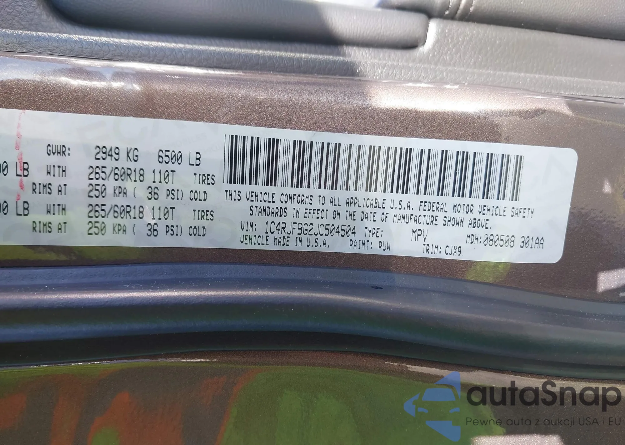 • VIN 1C4RJFBG2JC504504