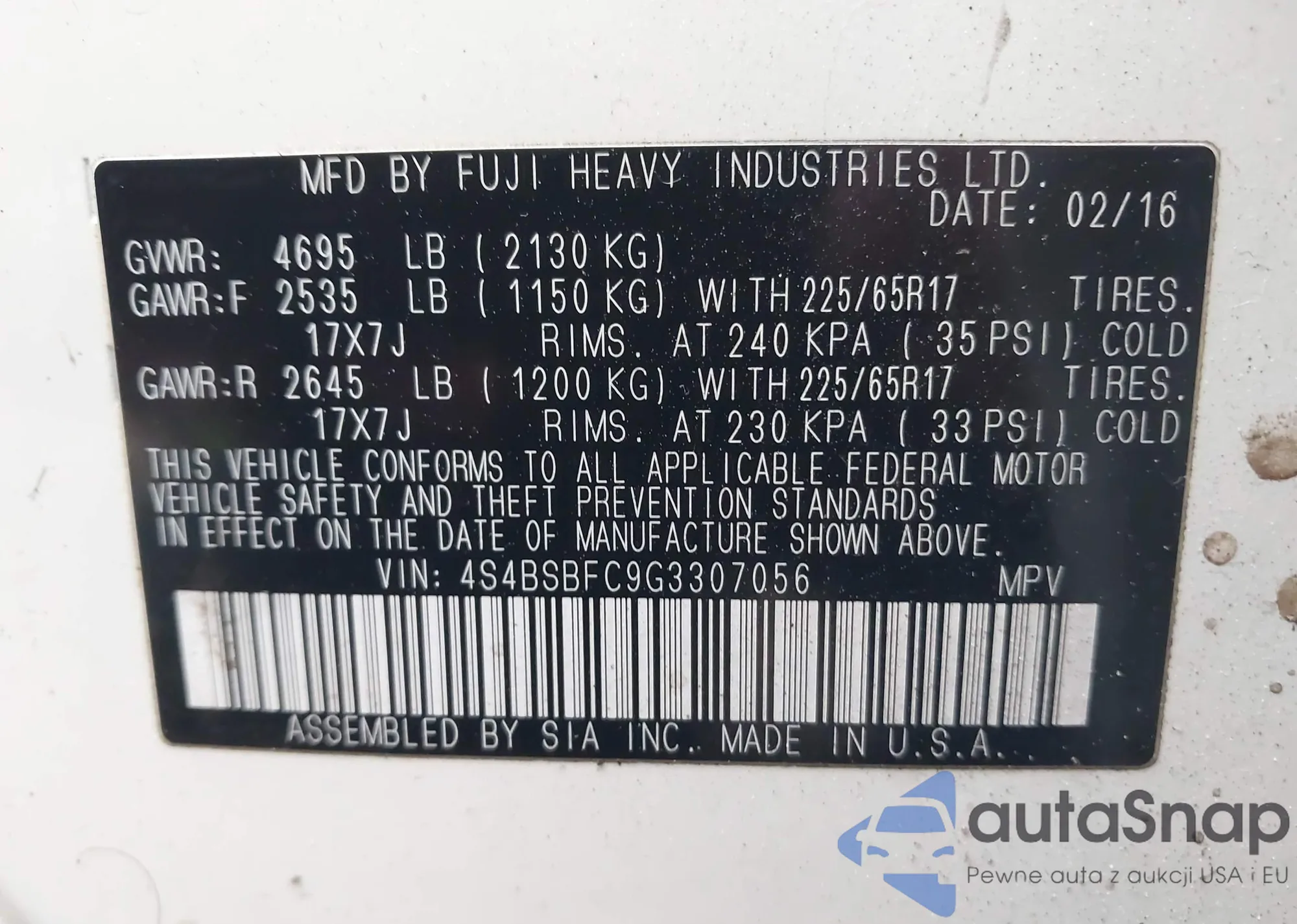 • VIN JF2SH6CC5AH710879
