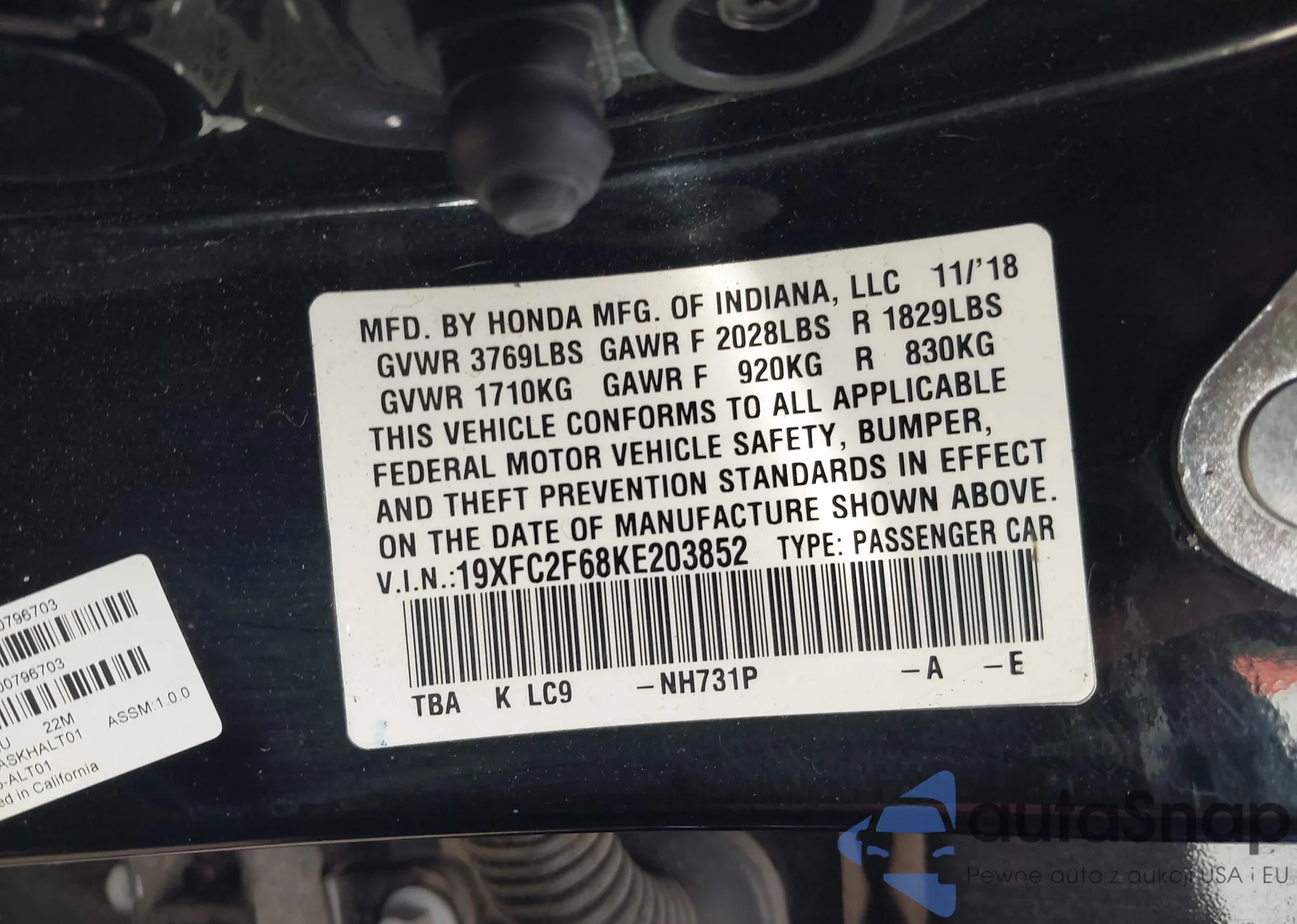 • VIN 19XFC2F68KE203852