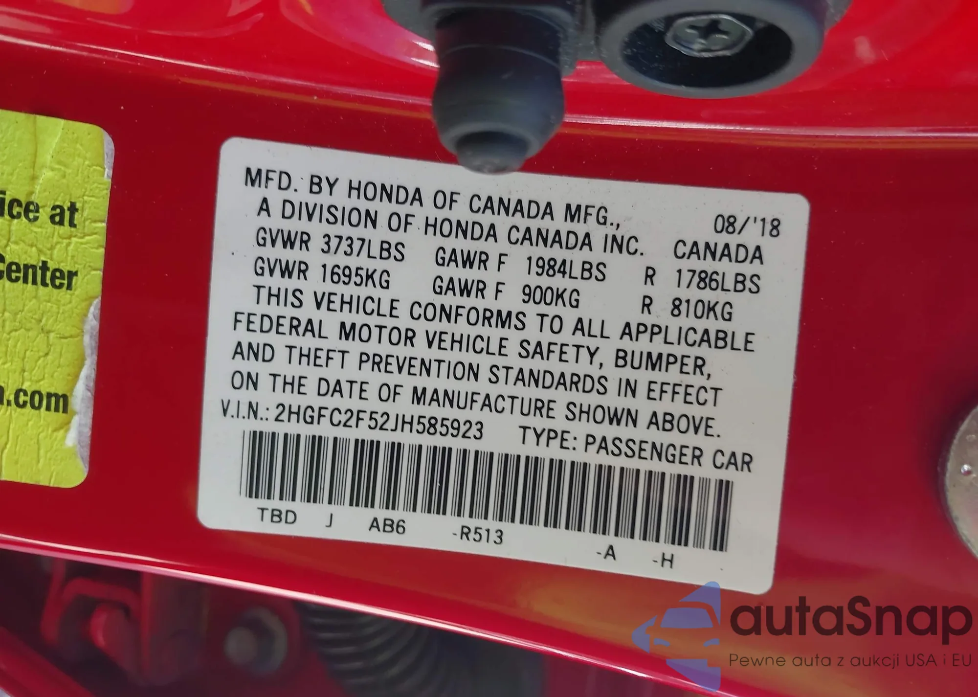 • VIN 2HGFC2F52JH585923