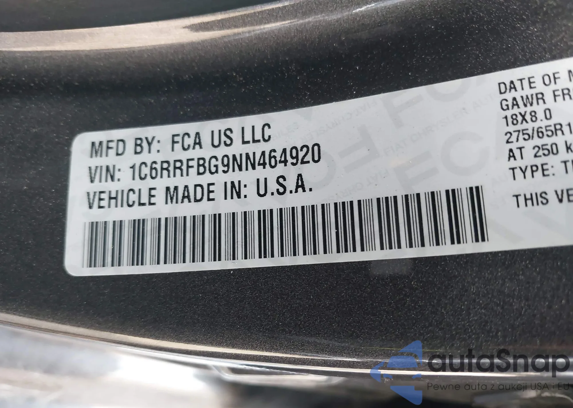 • VIN 1C6RRFBG9NN464920
