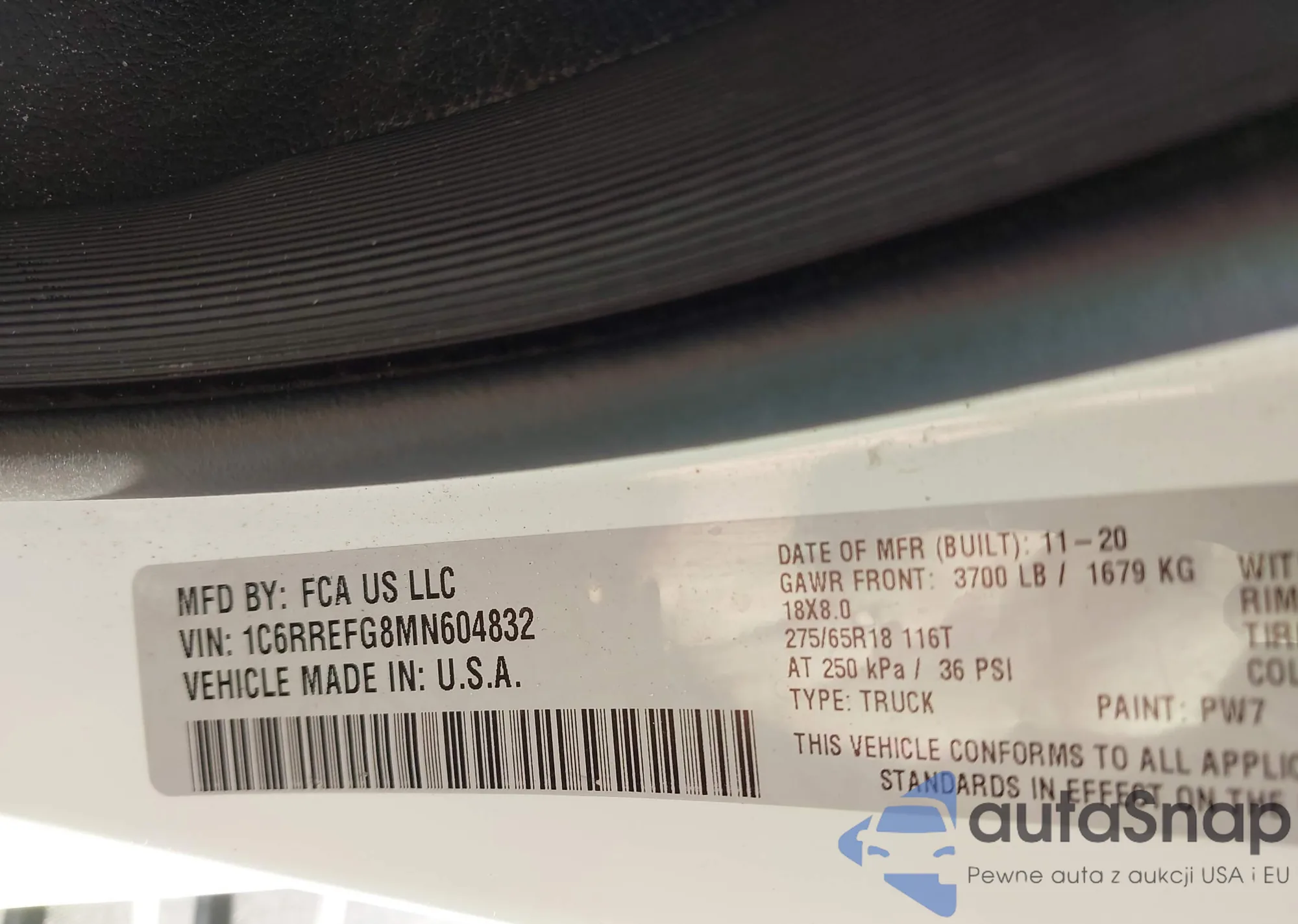 • VIN 1C6RREFG8MN604832