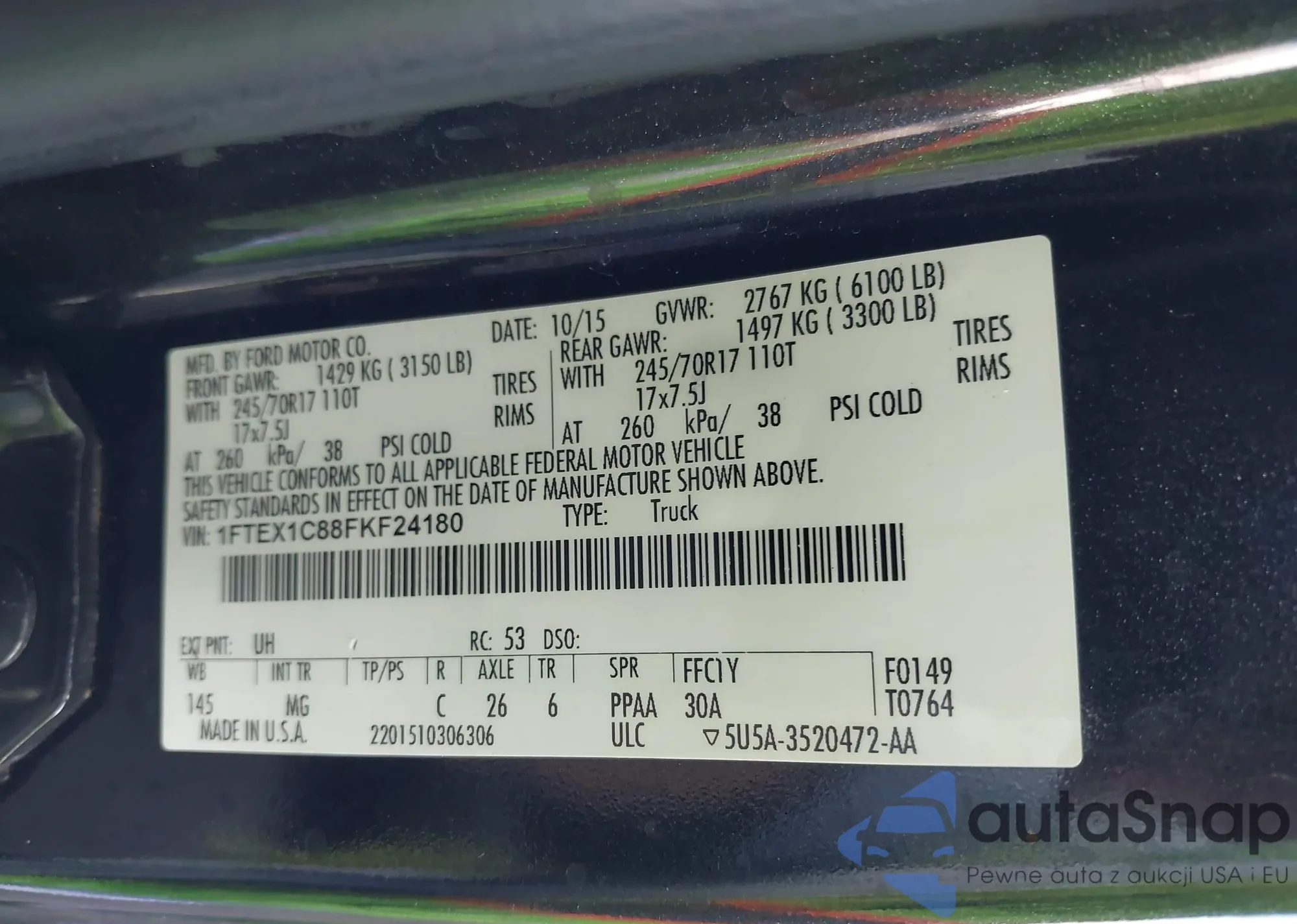 • VIN 1FTEW1EG0FFB69893