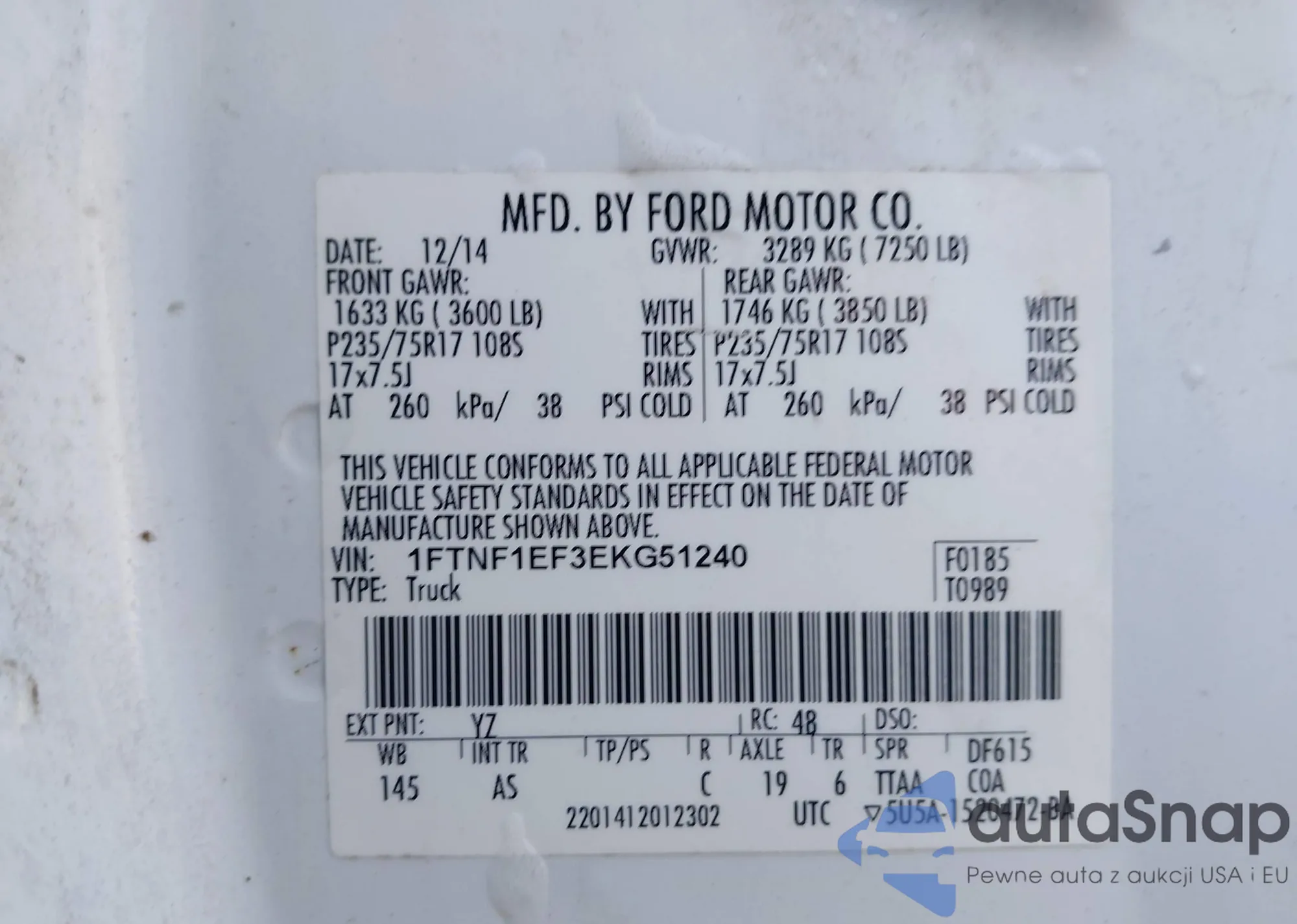 LOT: 40834068 VIN: 1FTNF1EF3EKG51240