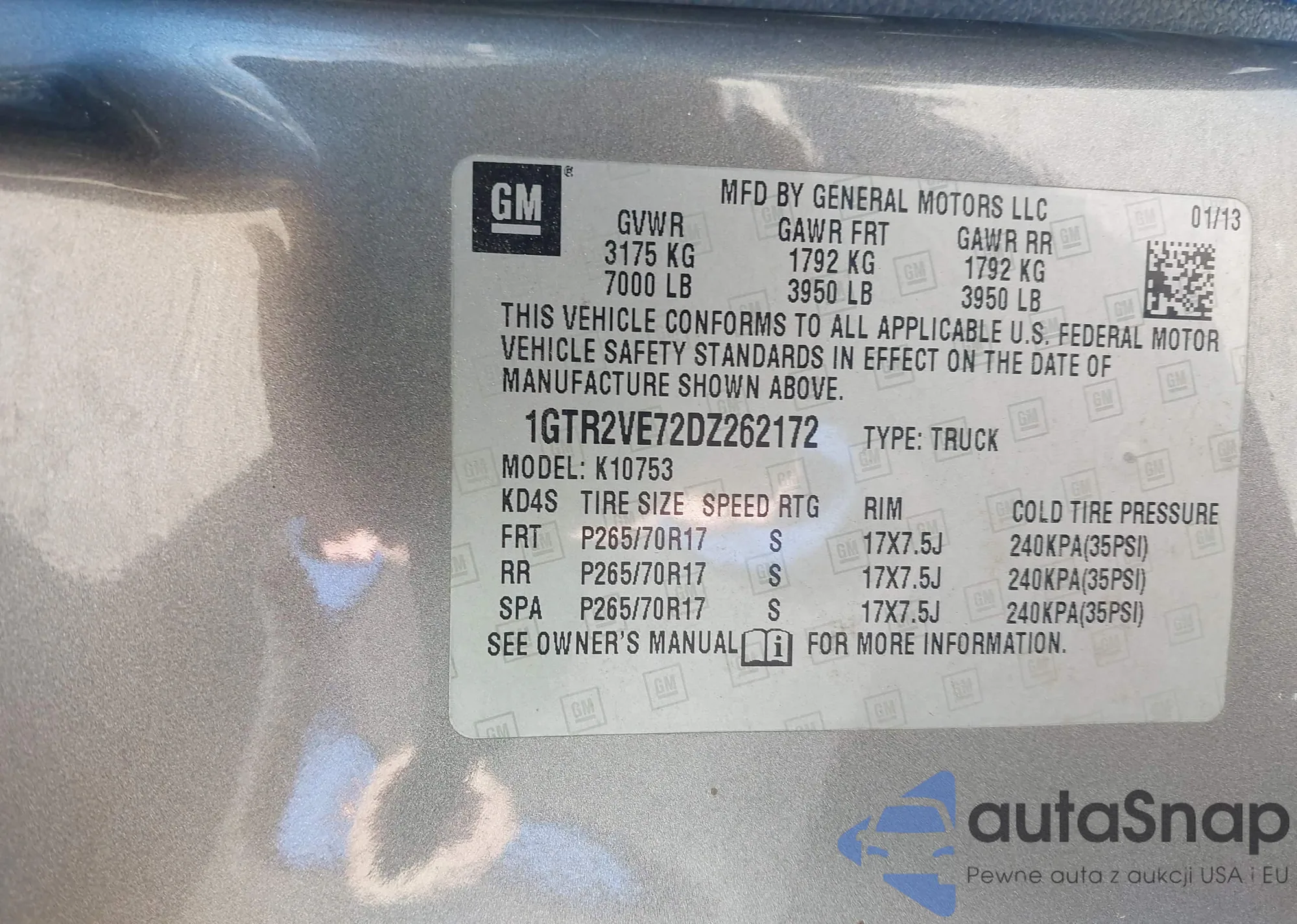 • VIN 1GTR2VE72DZ262172