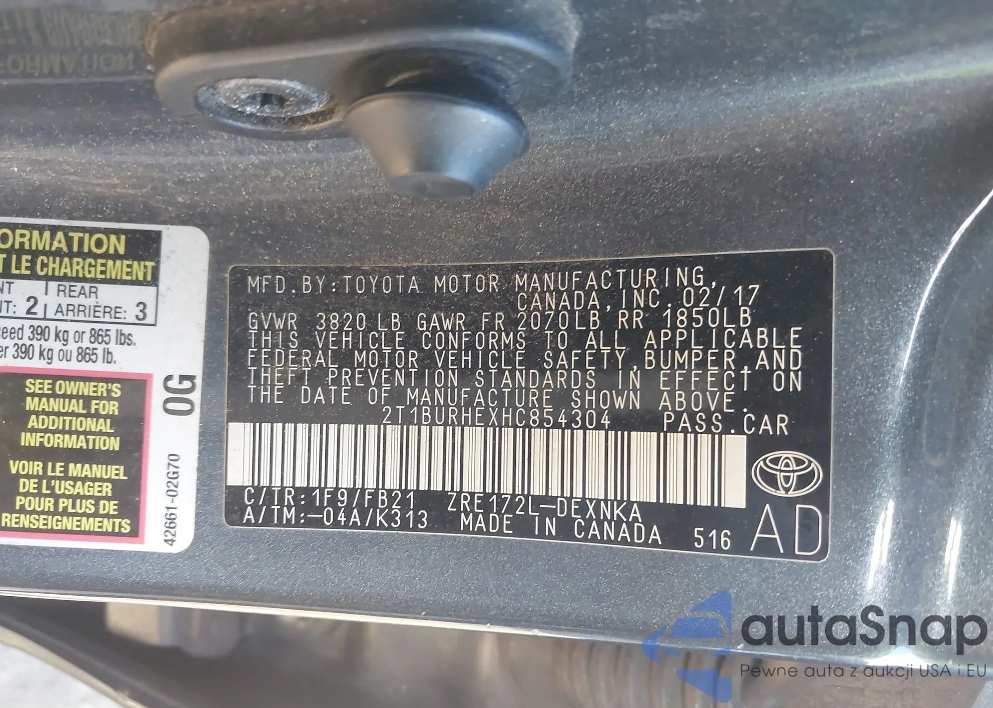 • VIN 2T1BURHEXHC854304