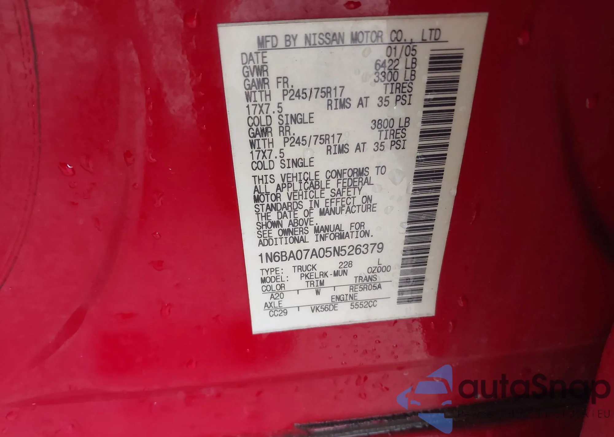 • VIN 5TFDW5F13DX302067