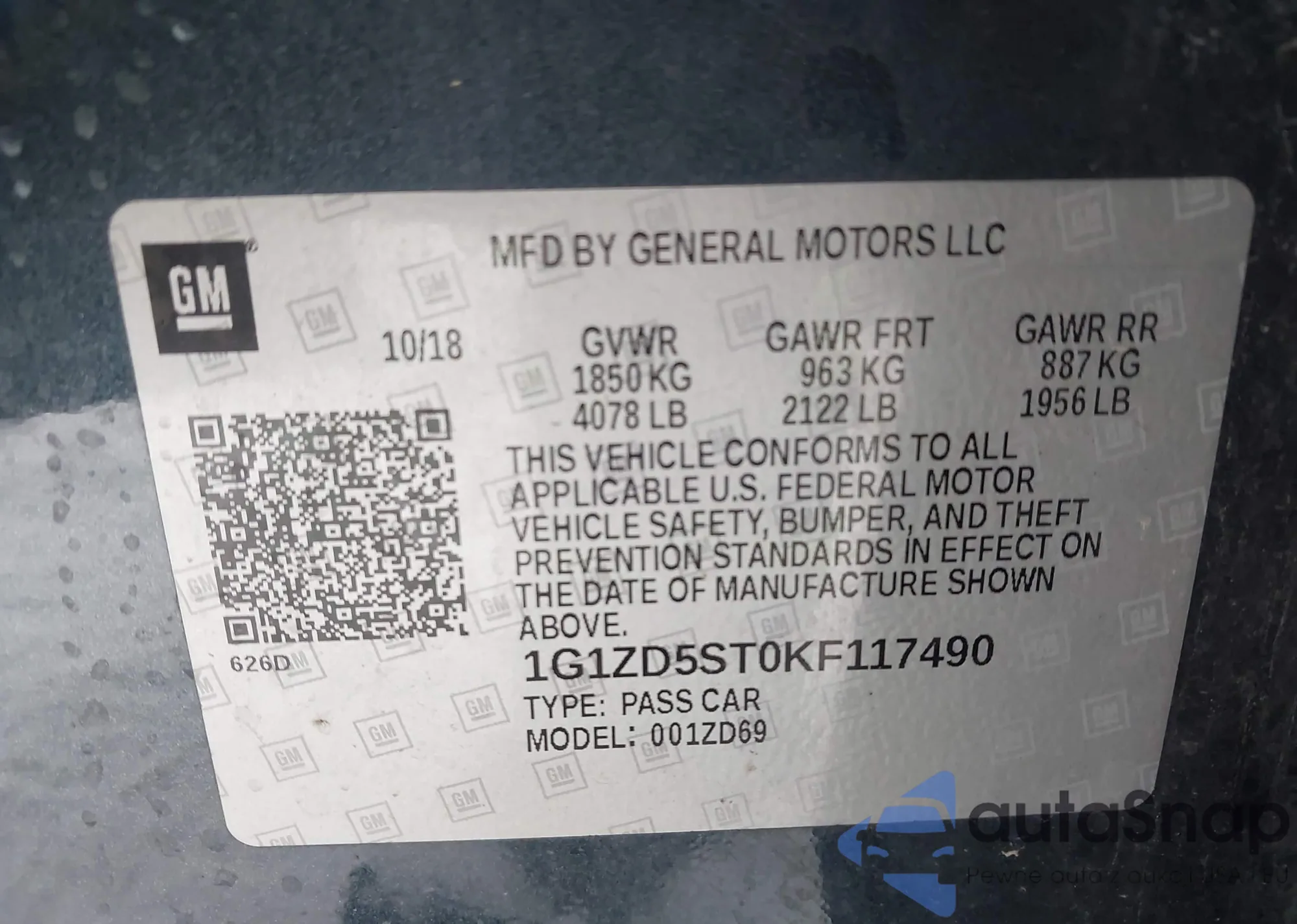 • VIN 1G1ZD5ST0KF117490