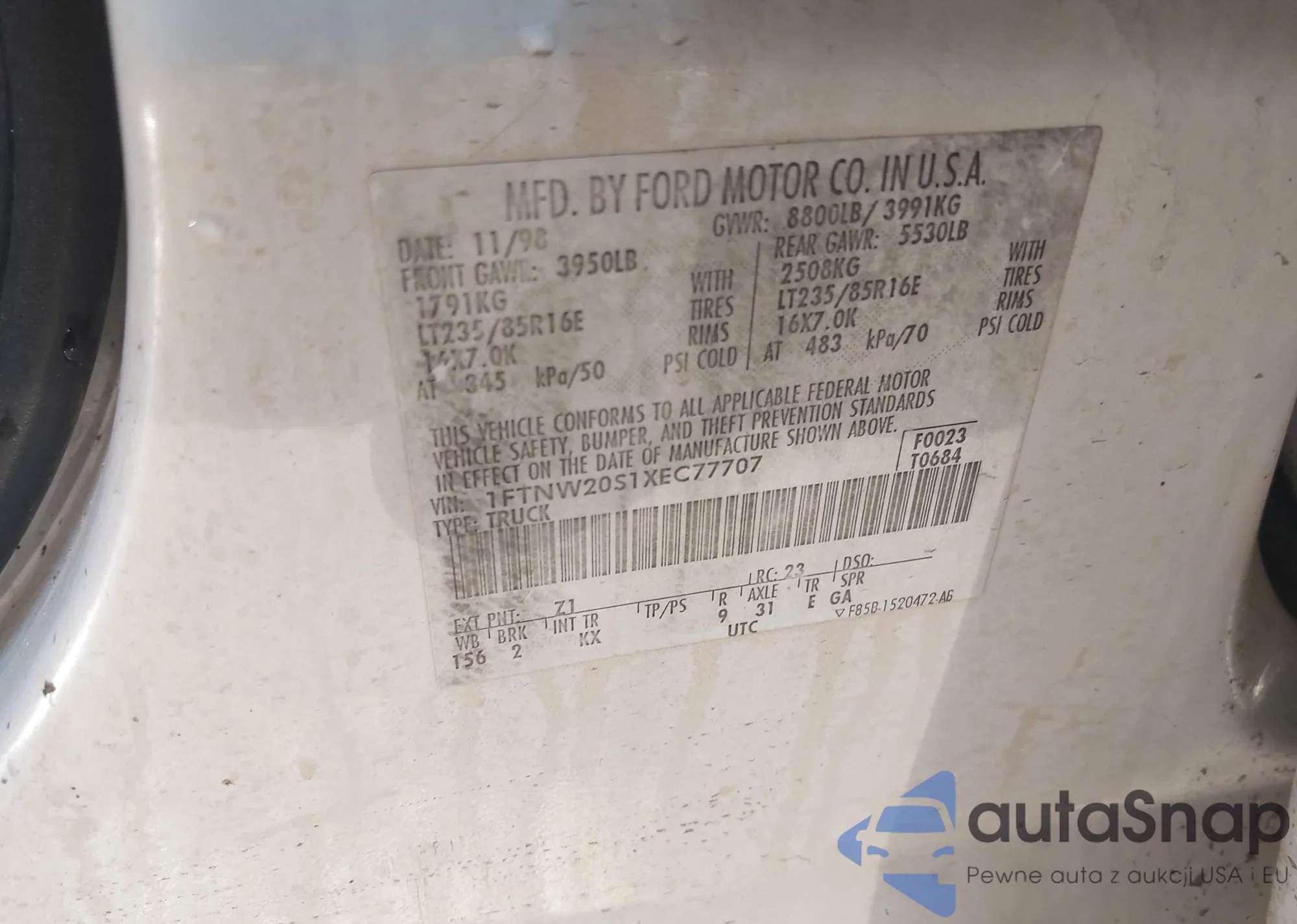 • VIN 1FTNW20S1XEC77707