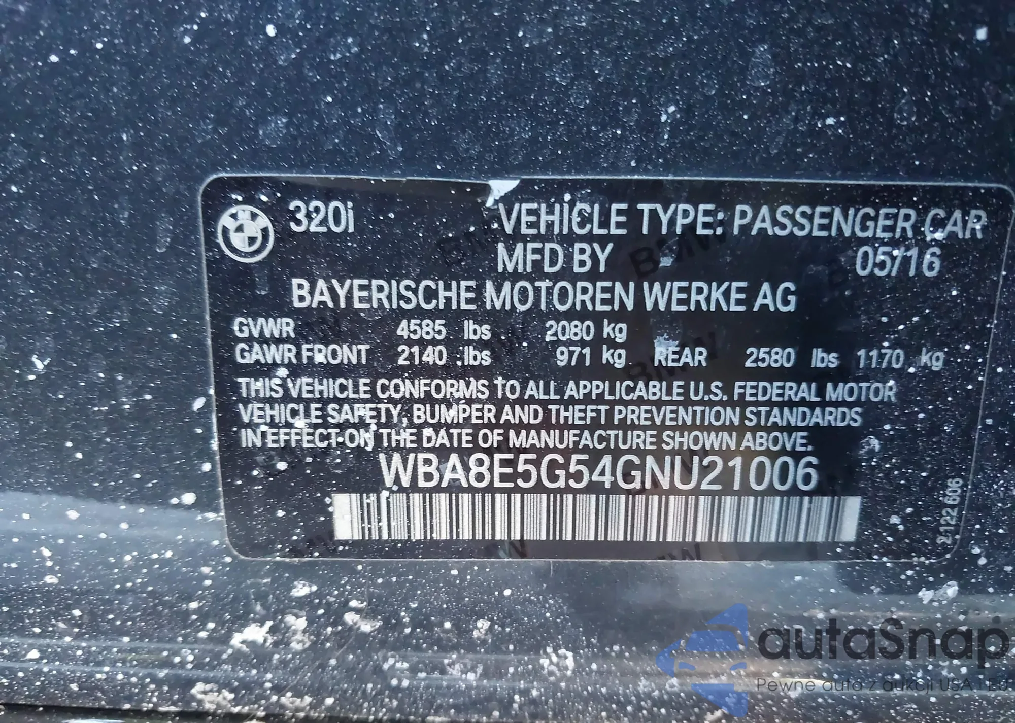 2016 BMW 320I xDrive from USA, damaged, VIN WBA8E5G54GNU21006