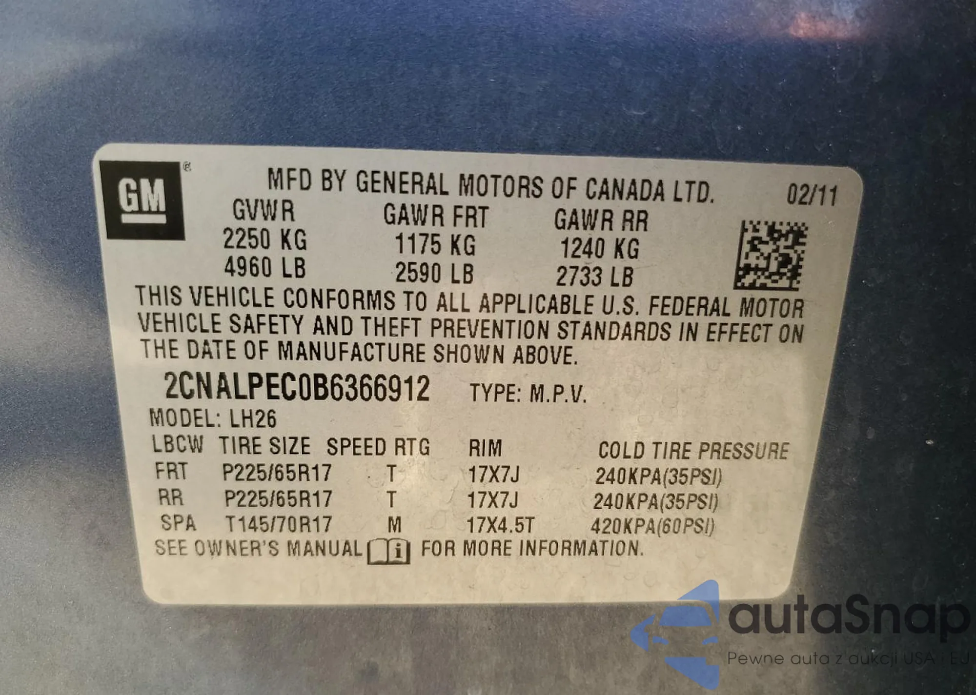 • VIN 2CNALPEC0B6366912