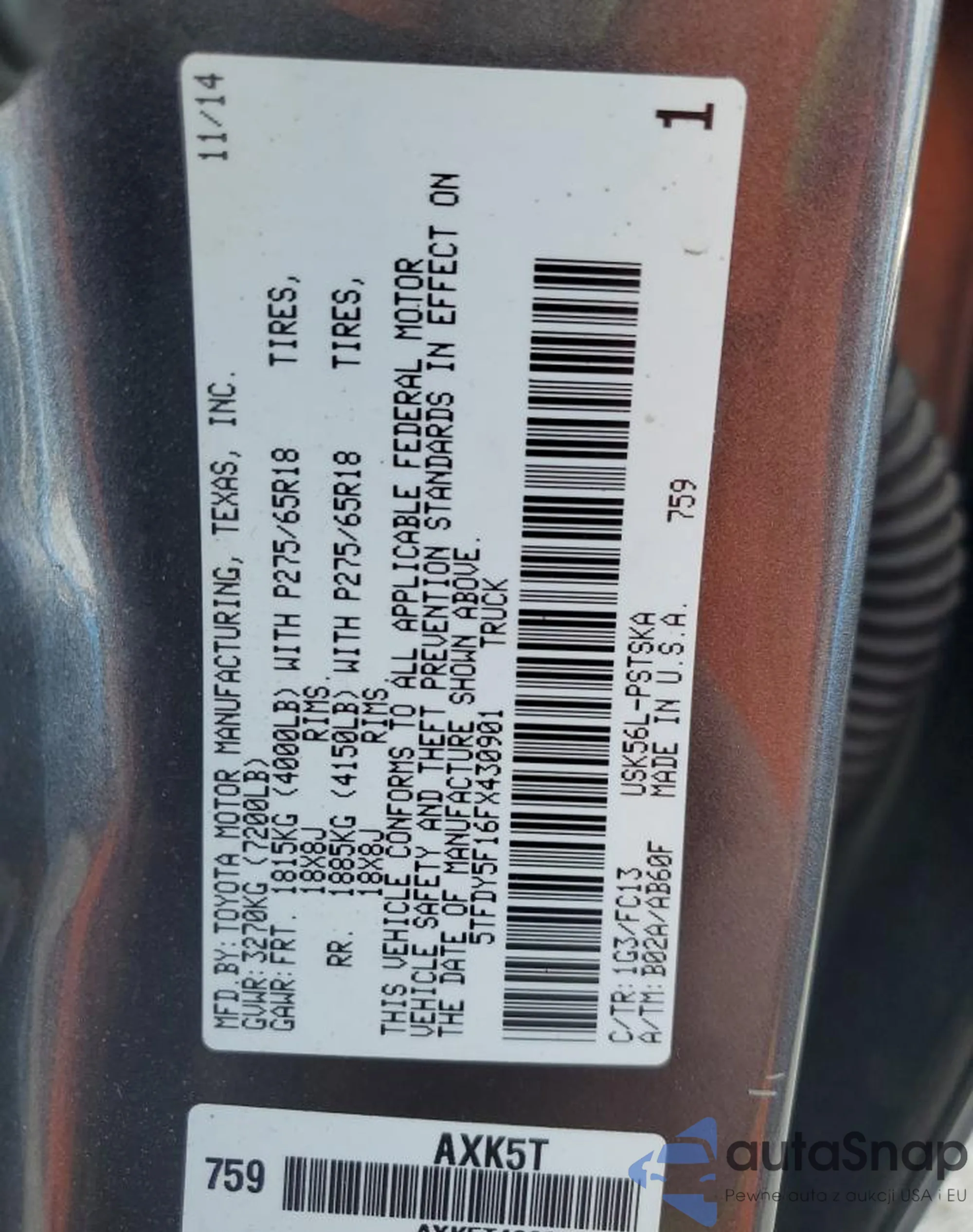 LOT: 81965394 VIN: 5TFDY5F16FX430901