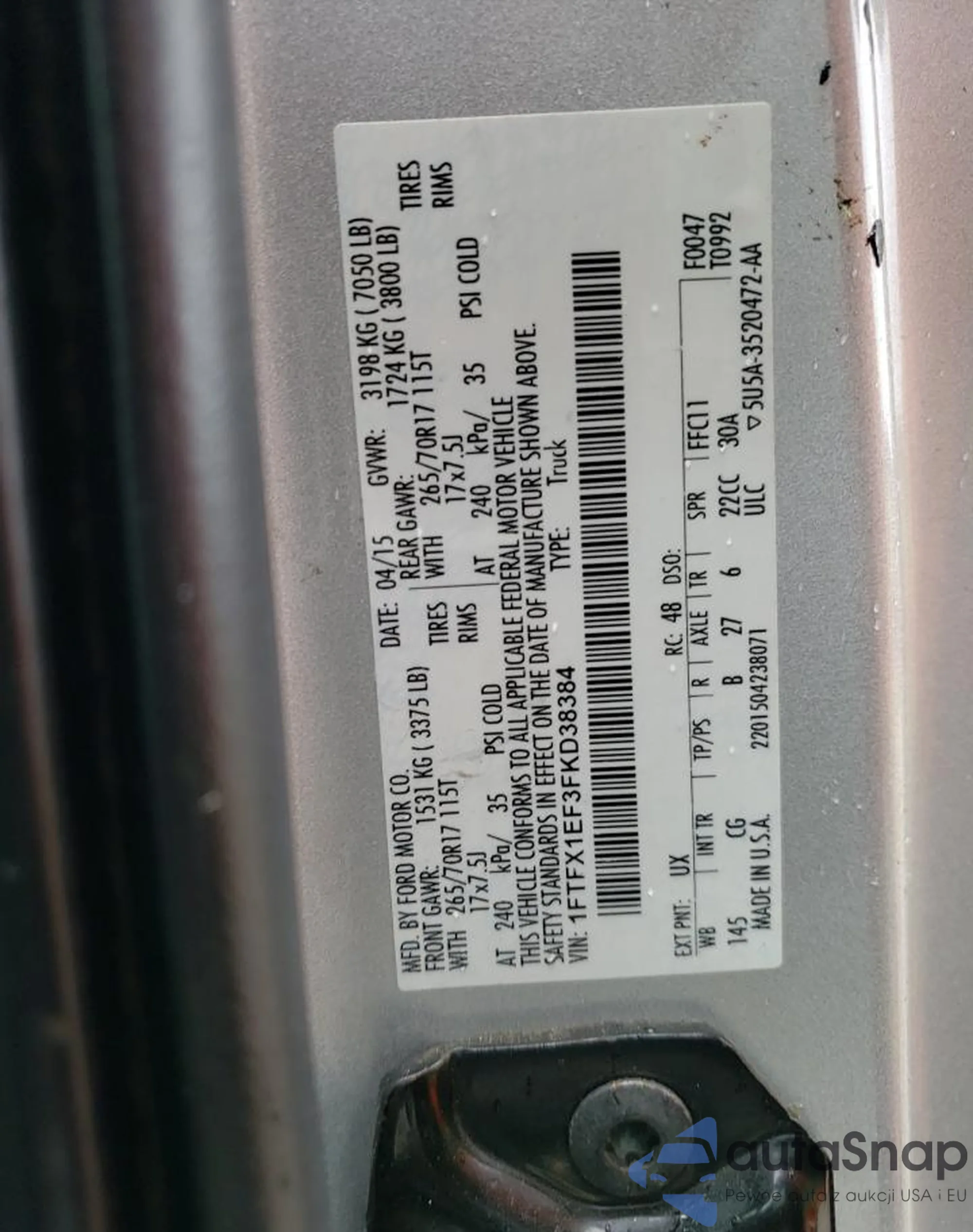• VIN 1FTFX1EF3FKD38384