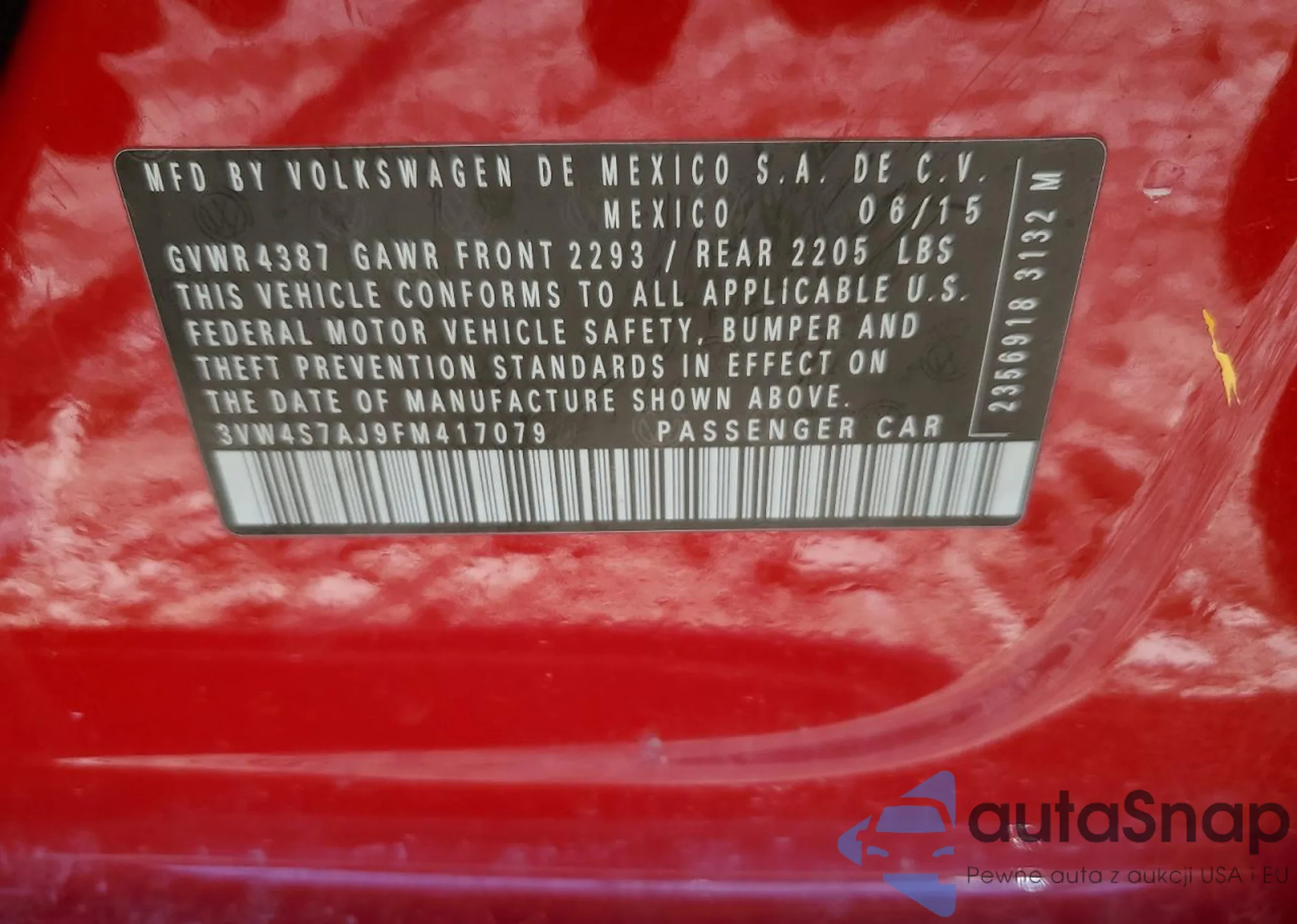• VIN 3VW4S7AJ9FM417079