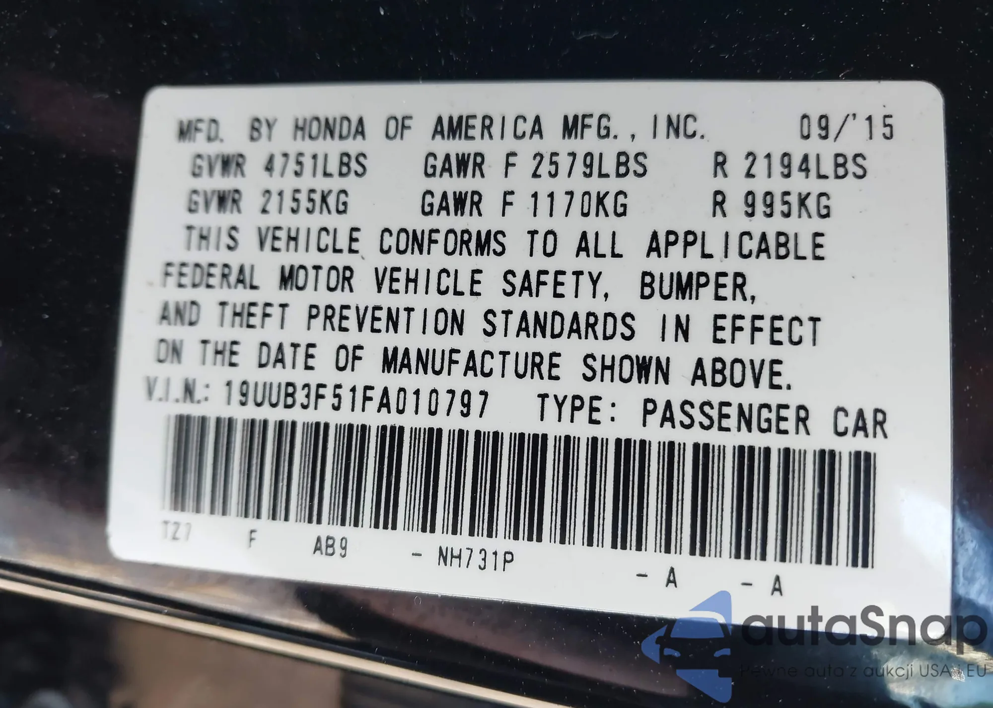 • VIN 19UUB3F51FA010797