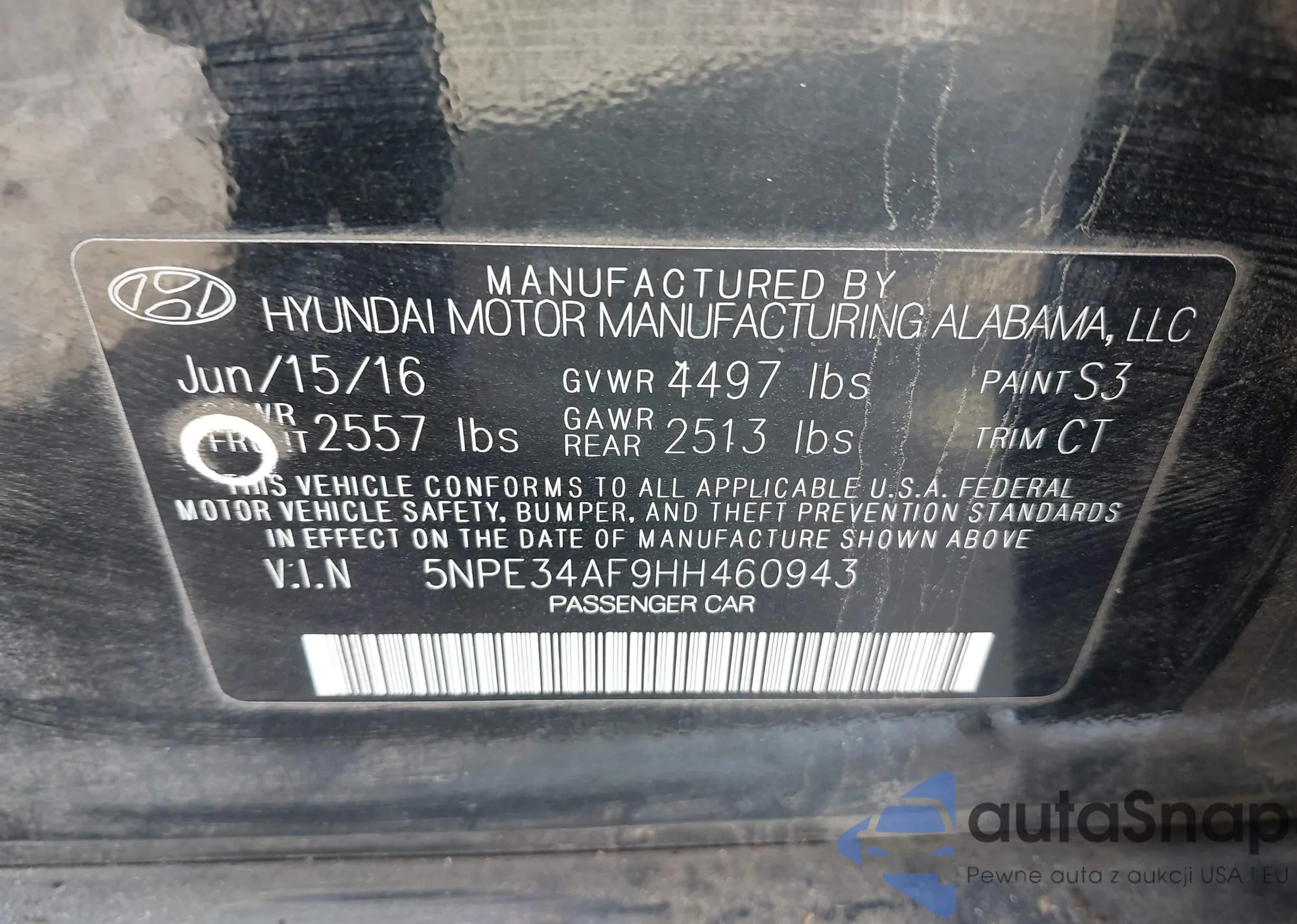 • VIN 5NPE34AF9HH460943