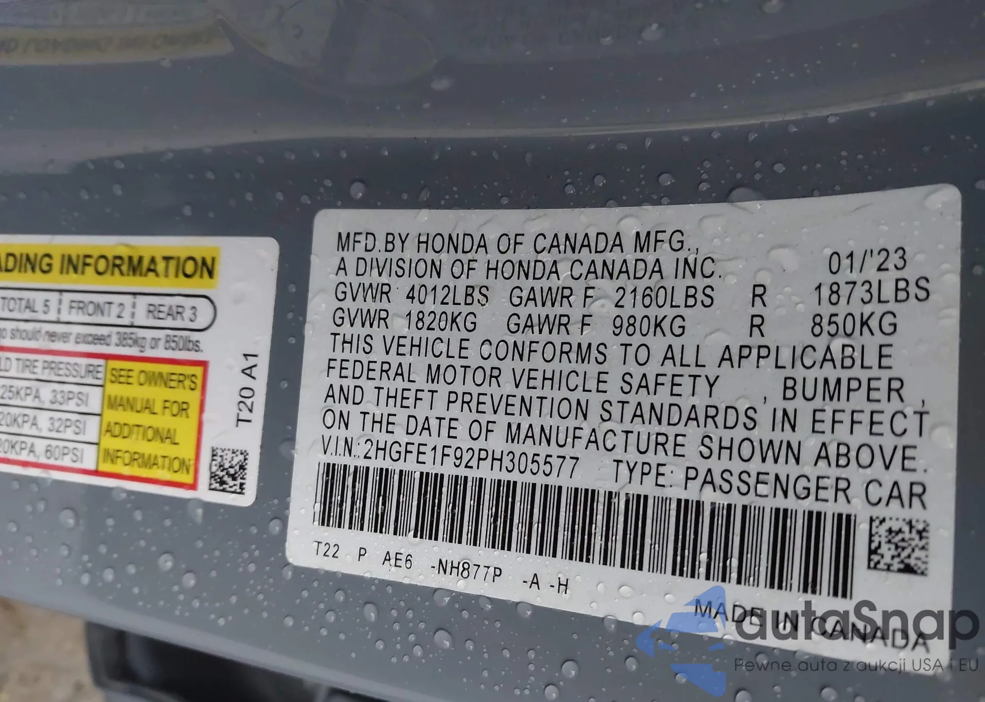 • VIN 2HGFE1F92PH305577