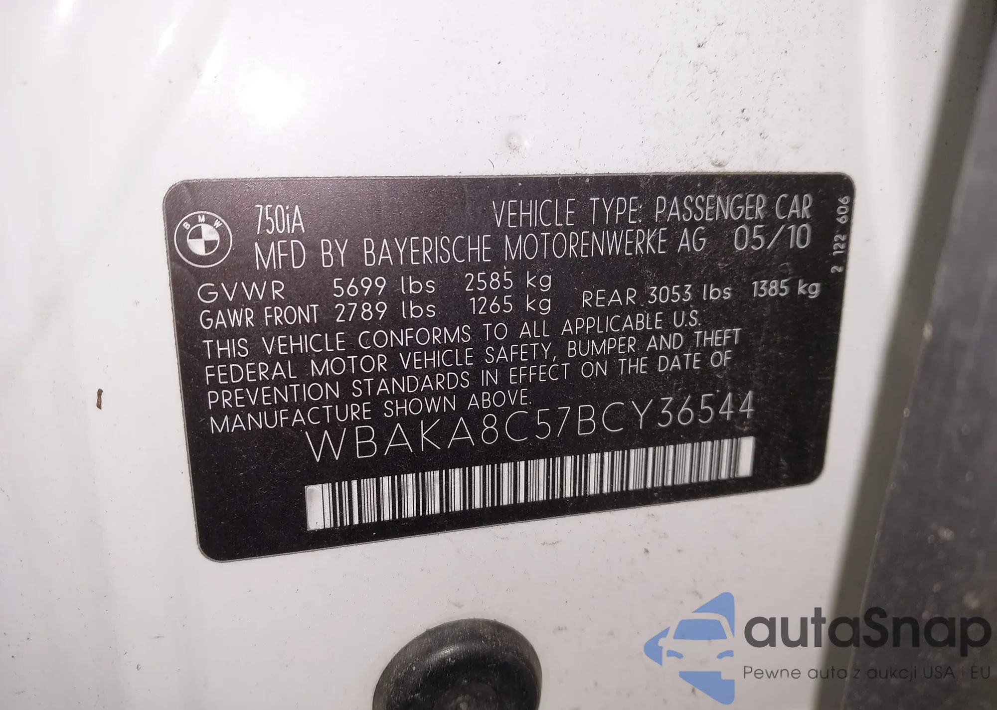 • VIN WBAKA8C57BCY36544