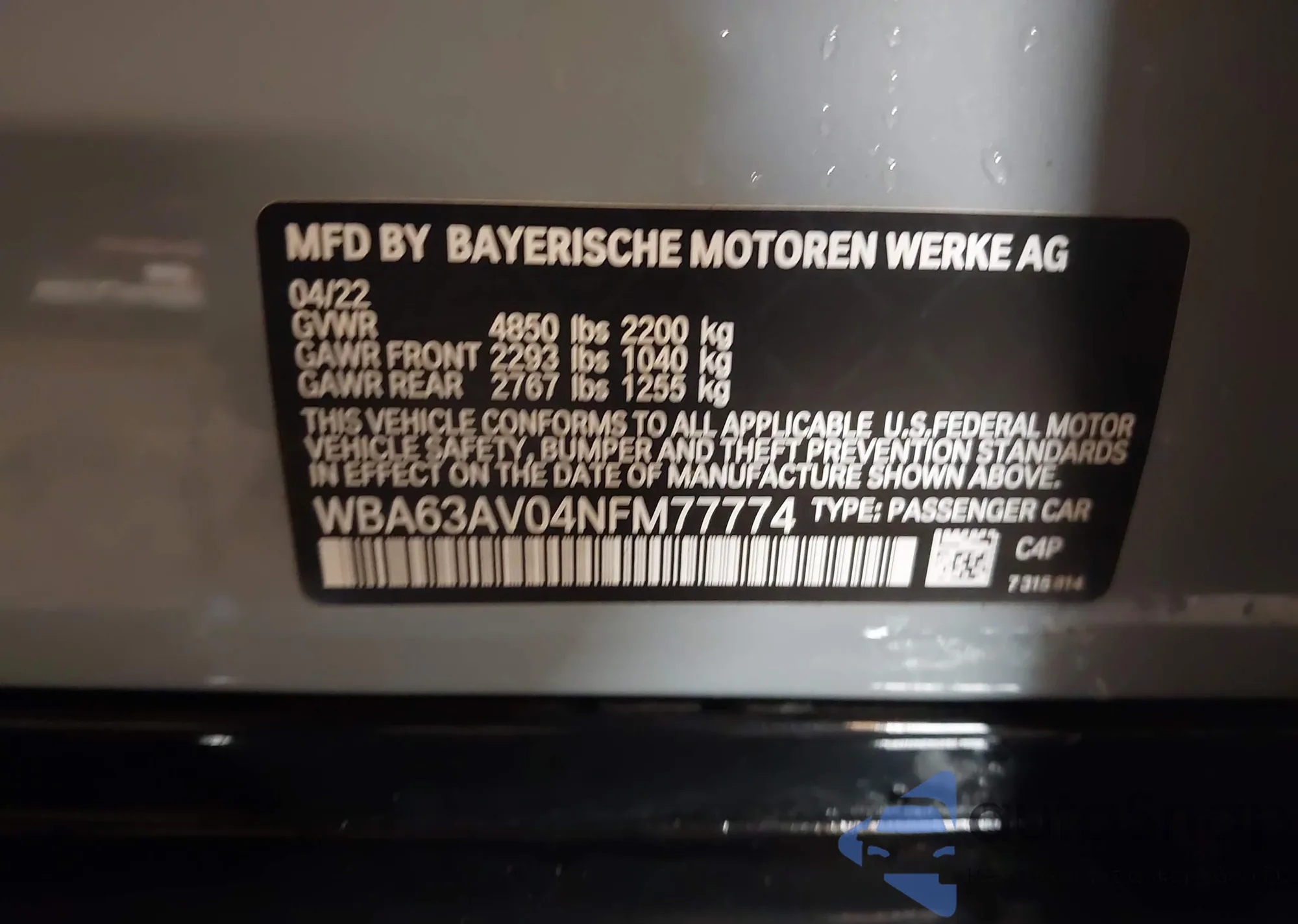 • VIN WBA63AV04NFM77774