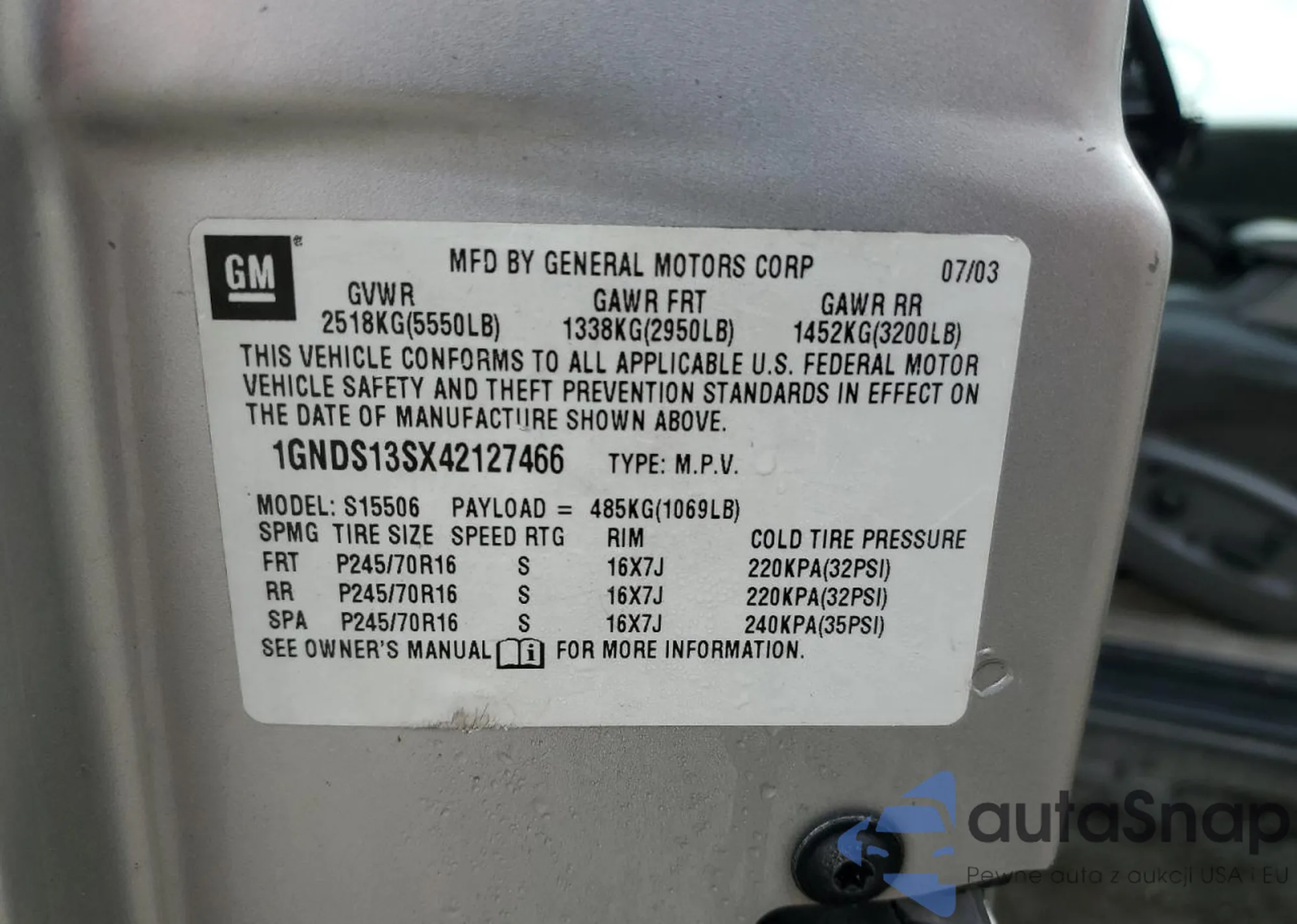 • VIN 1GNDS13SX42127466