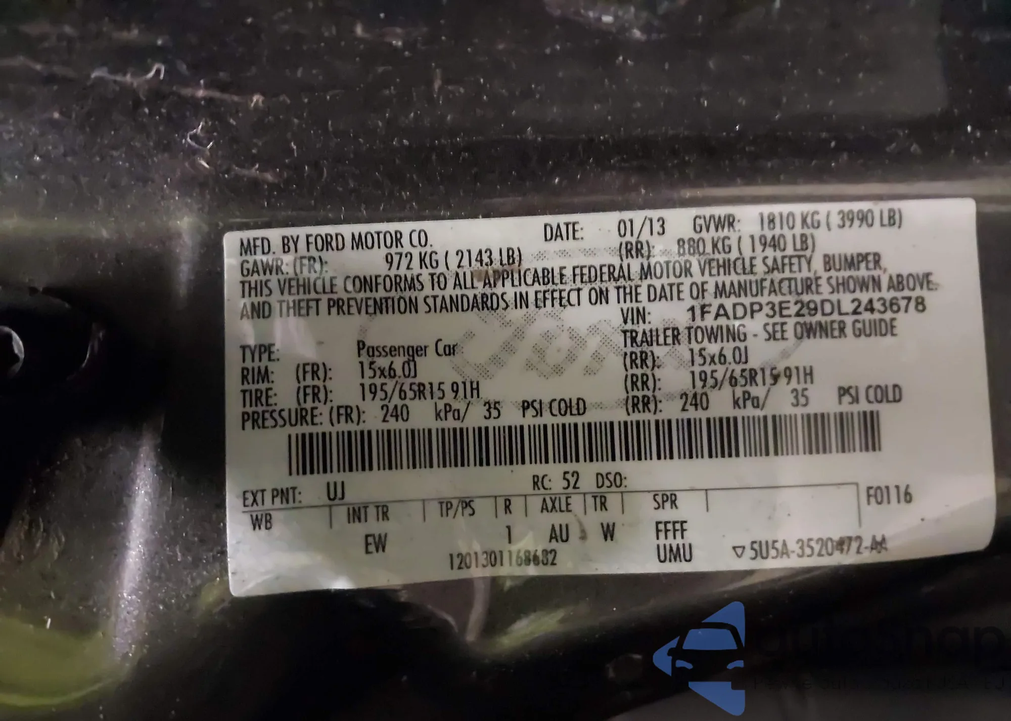 LOT: 38203435 VIN: 1FADP3E29DL243678