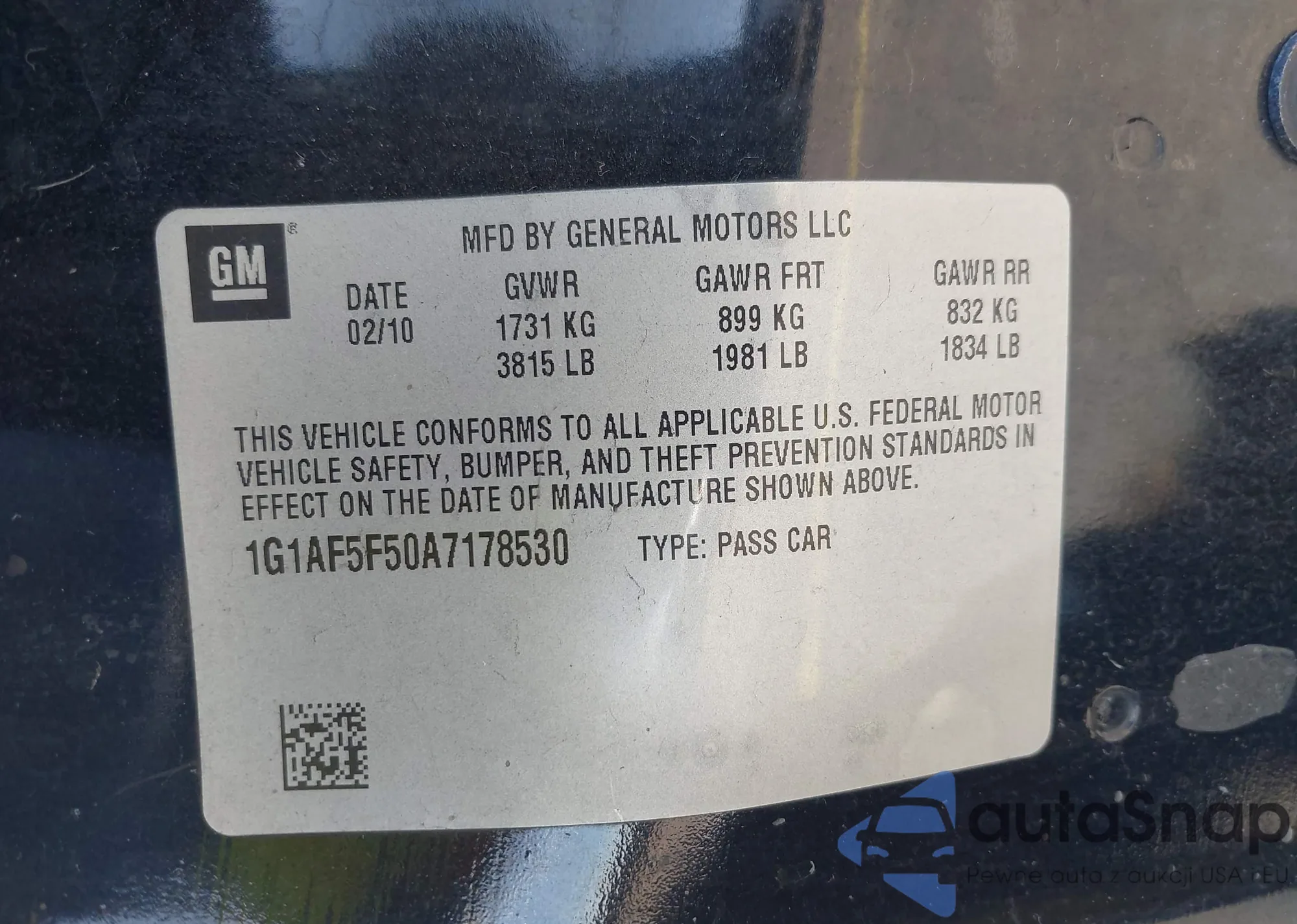 • VIN 1G1AF5F50A7178530