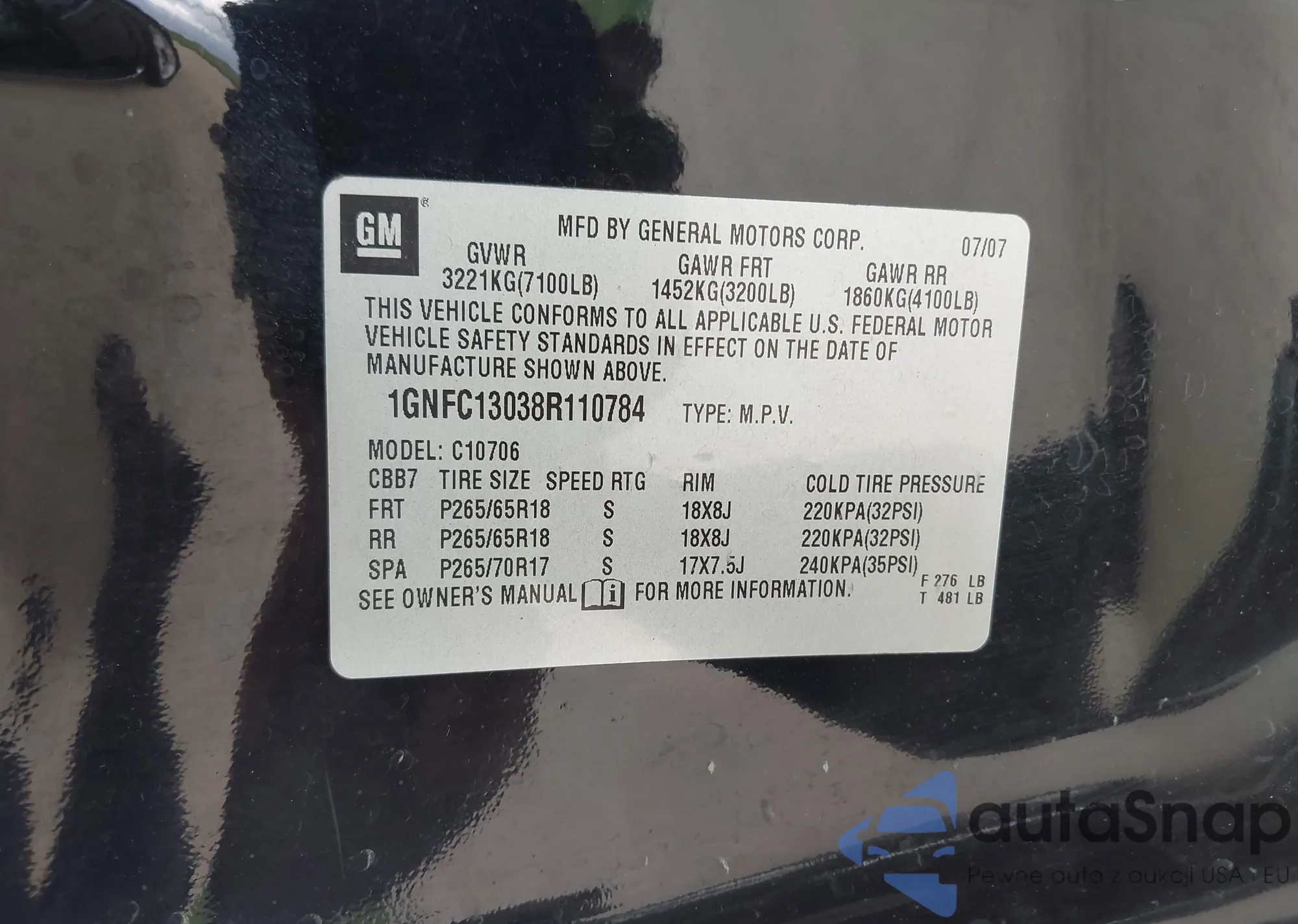 • VIN 1GNFC13038R110784