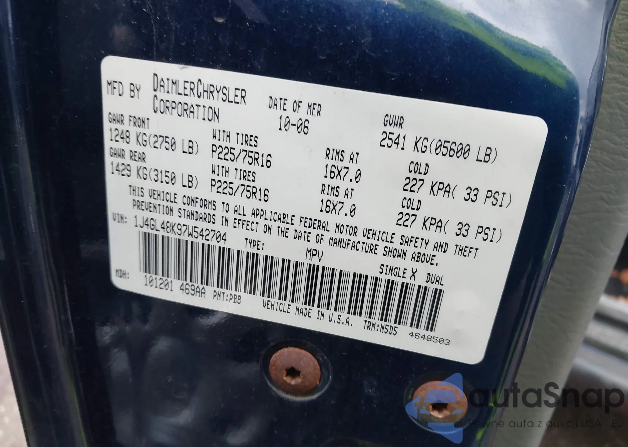 • VIN 1J4GL48K97W542704