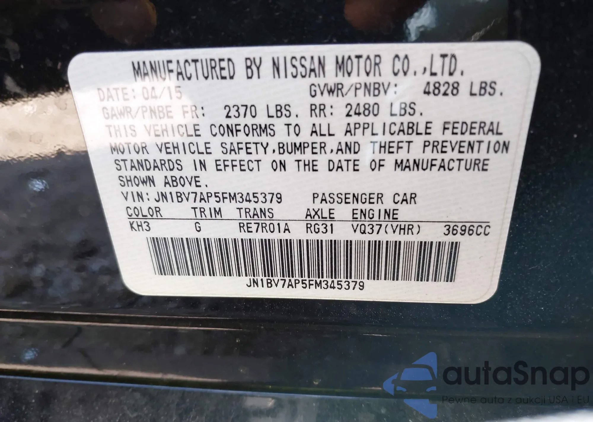 LOT: 38784208 VIN: JN1BV7AP5FM345379