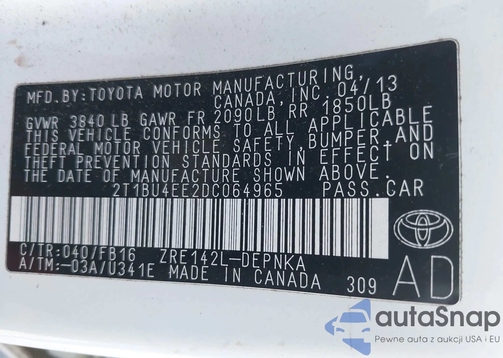 • VIN 2T1BU4EE2DC064965