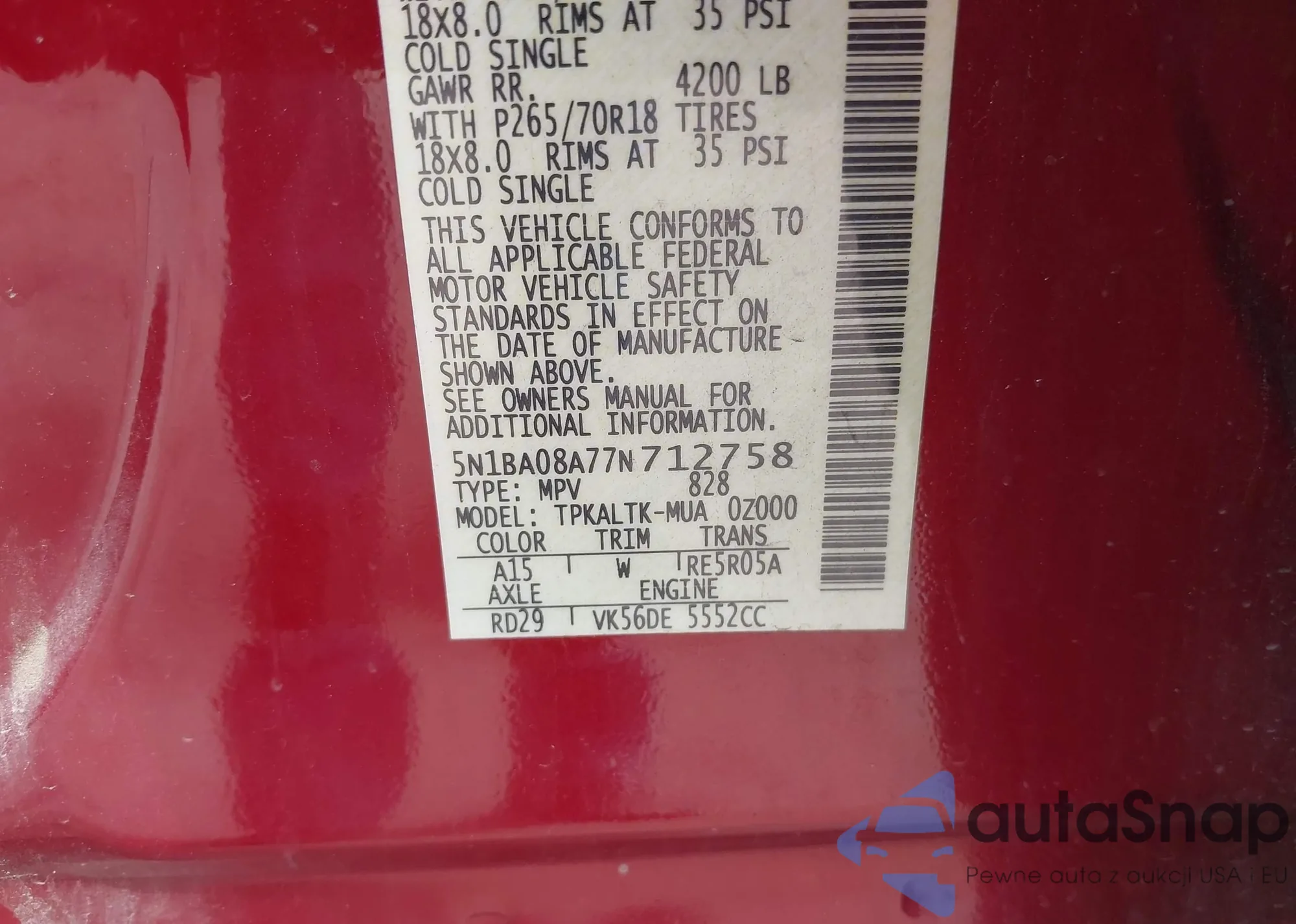 • VIN 5N1BA08A77N712758