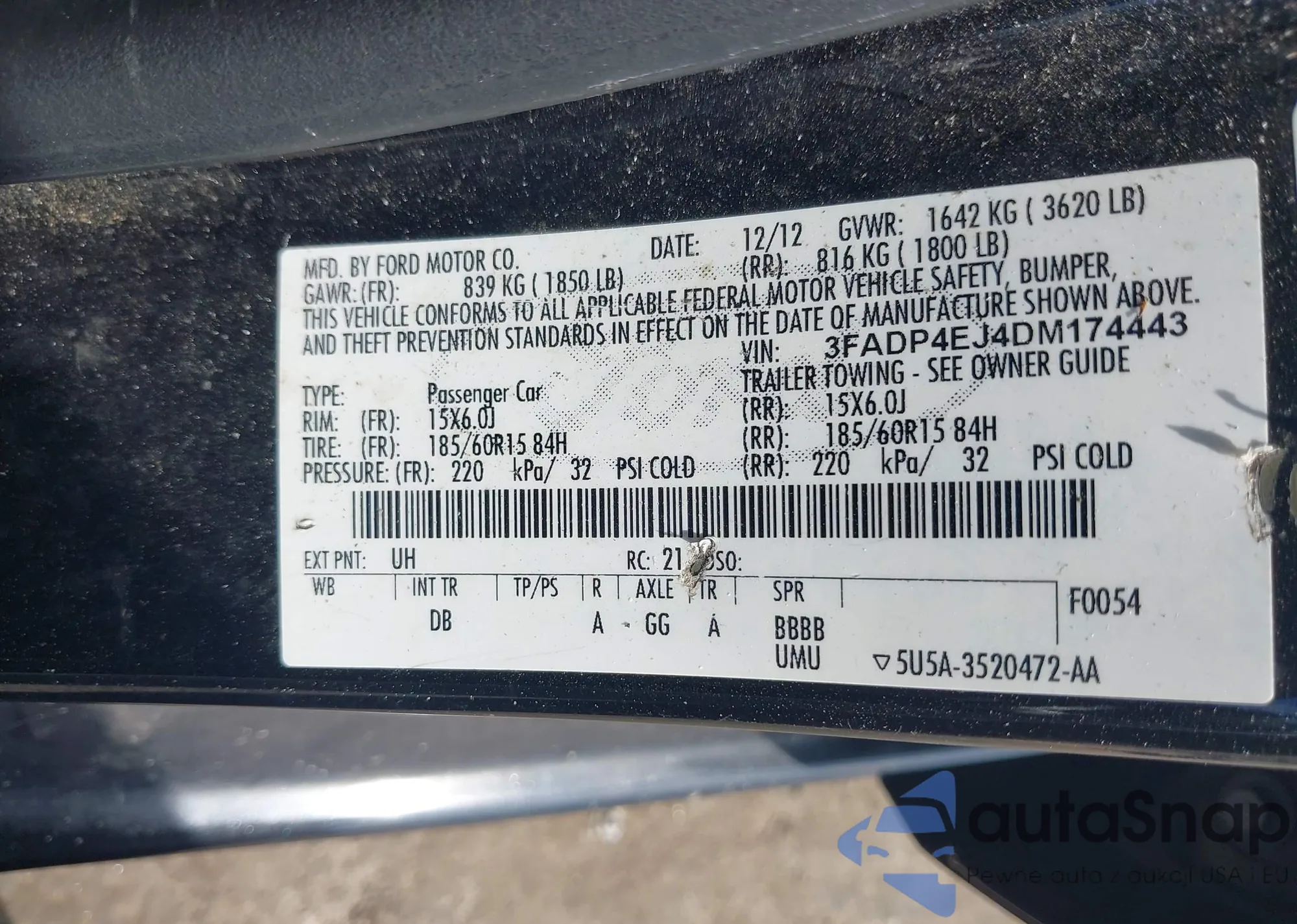 • VIN 3FADP4EJ4DM174443