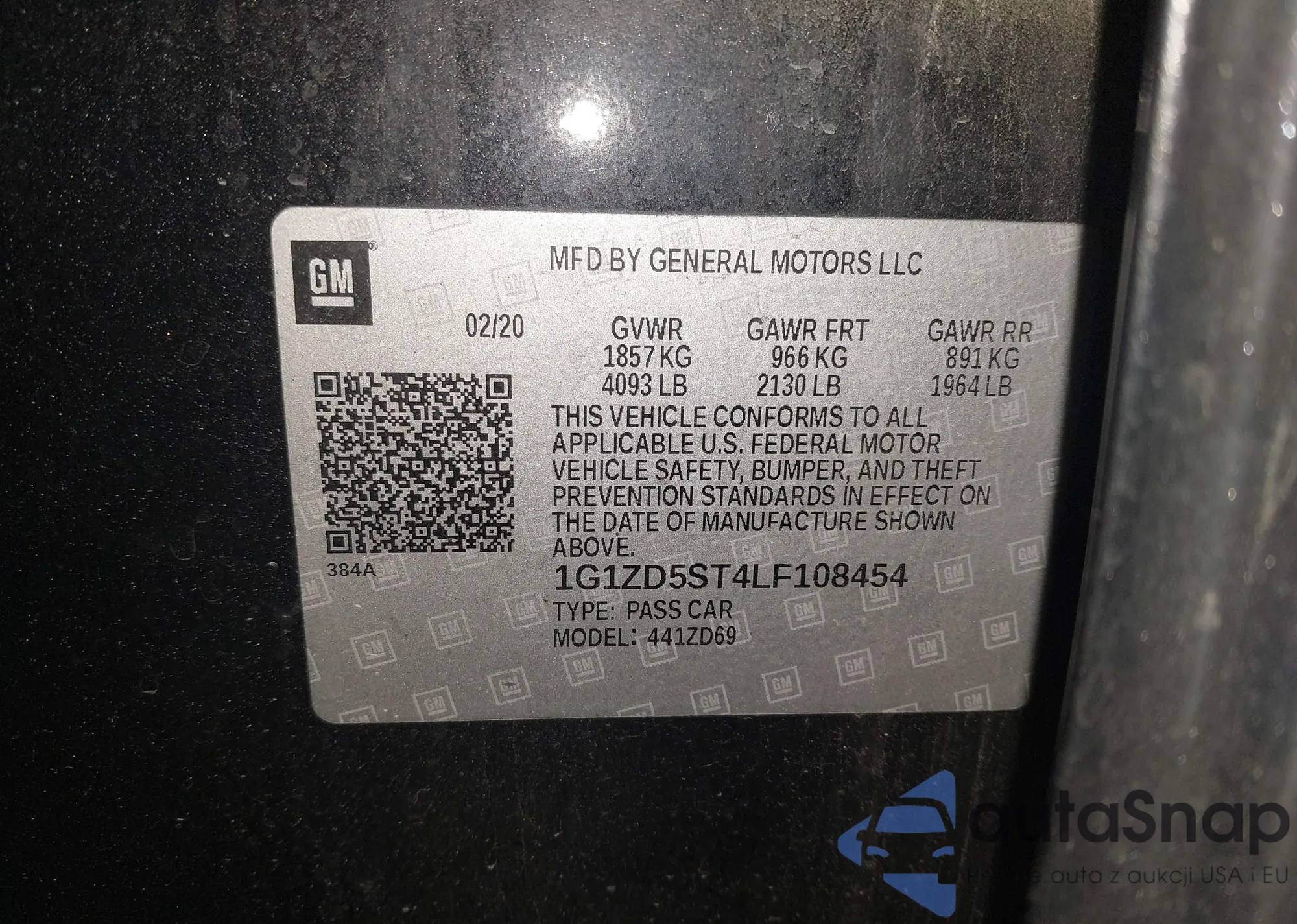 LOT: 41076921 VIN: 1G1ZD5ST4LF108454