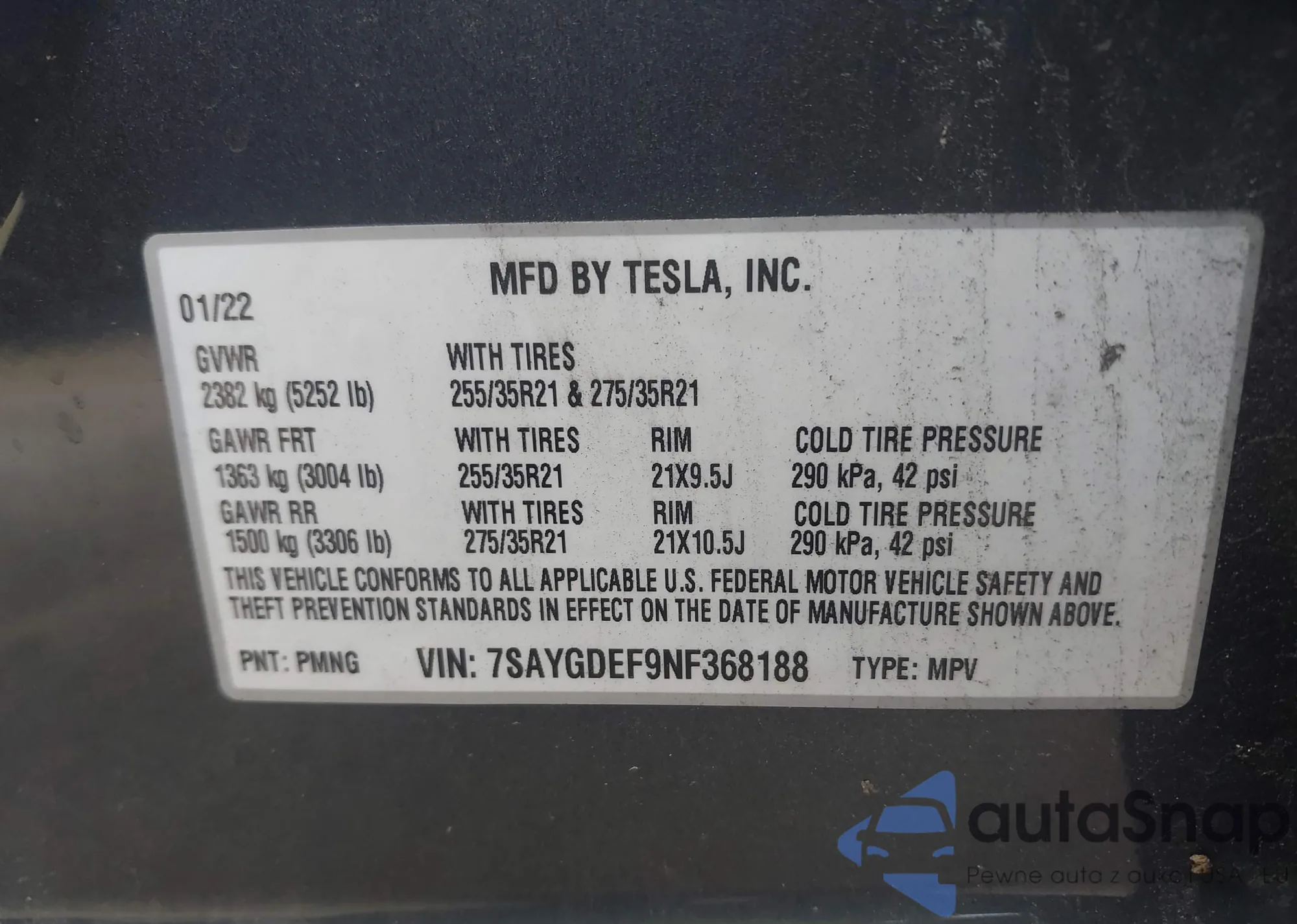 • VIN 7SAYGDEF9NF368188