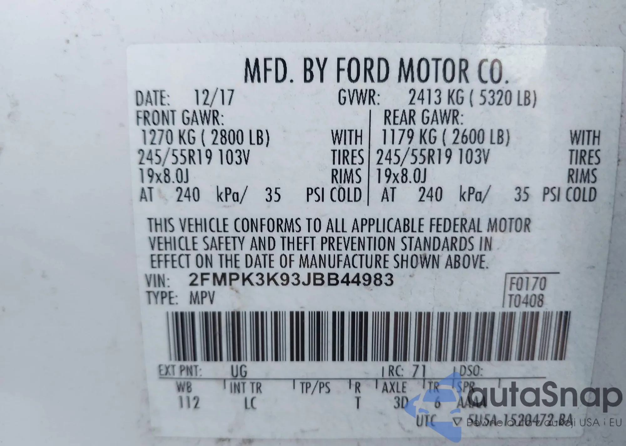 LOT: 38493674 VIN: JN1BJ1CP8KW526545