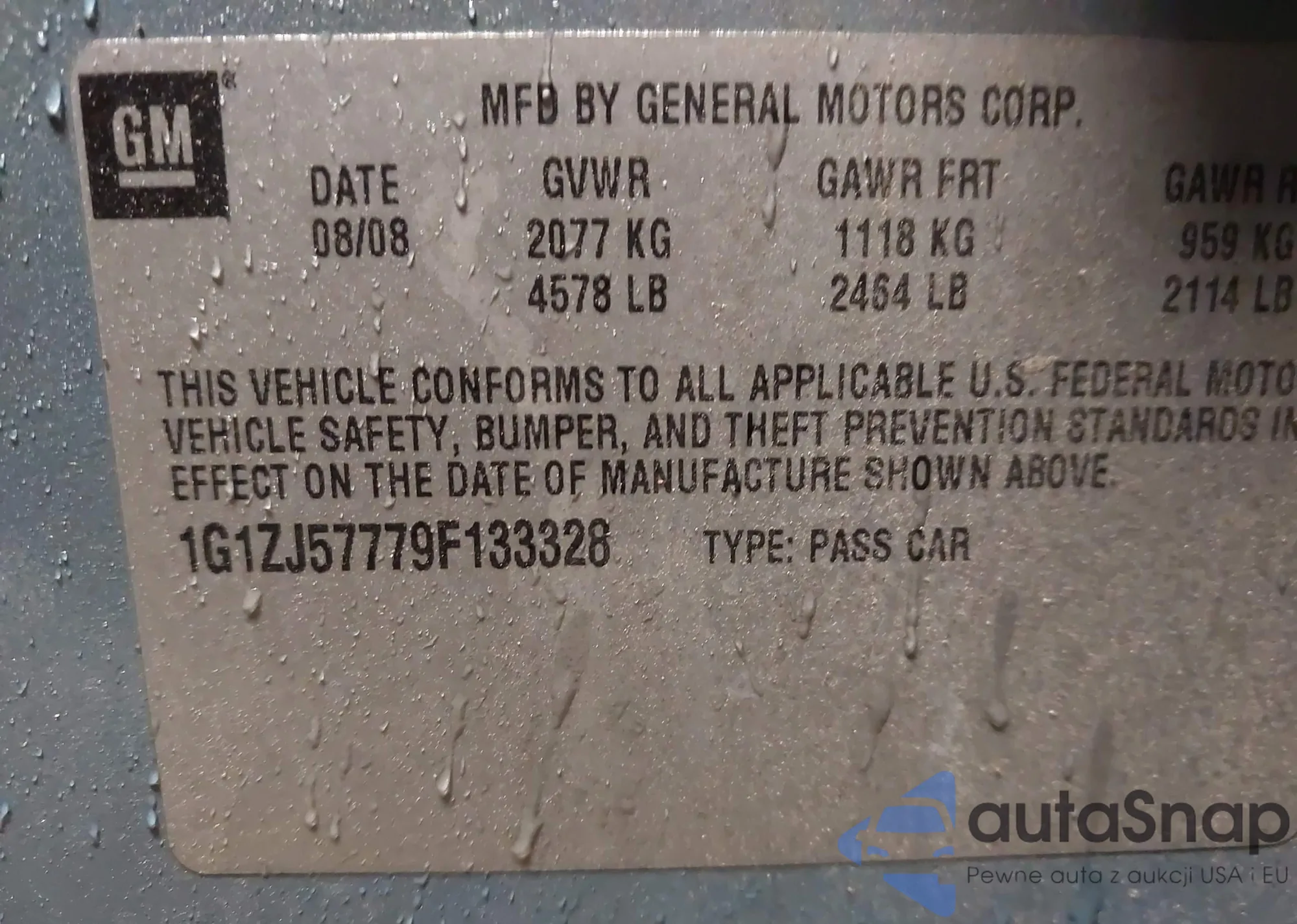 • VIN 1G1ZJ57779F133328