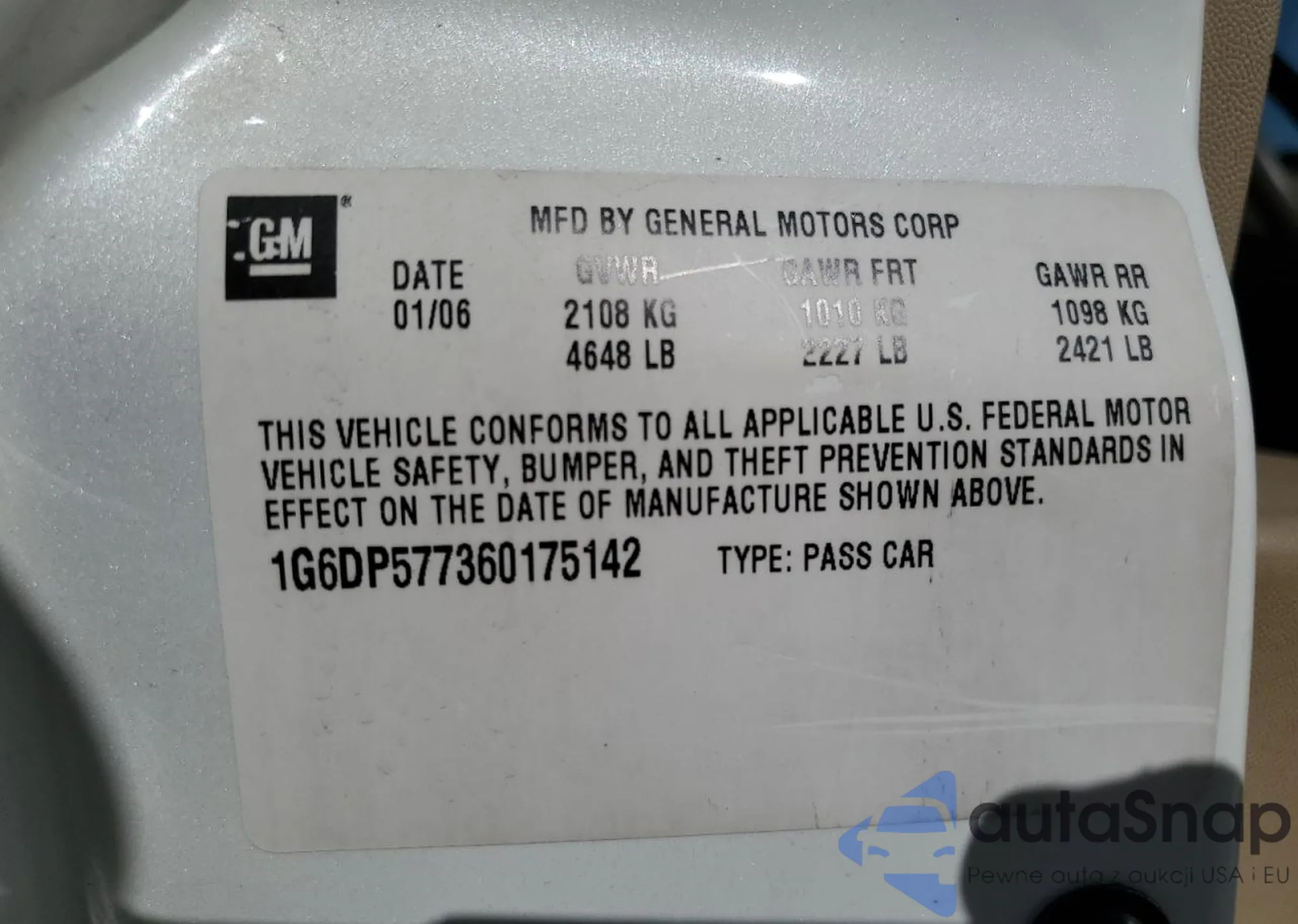 • VIN 1G6DP577360175142