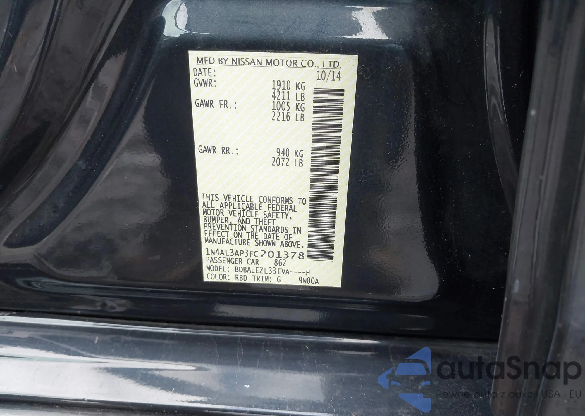 • VIN 1N4AL3AP3FC201378